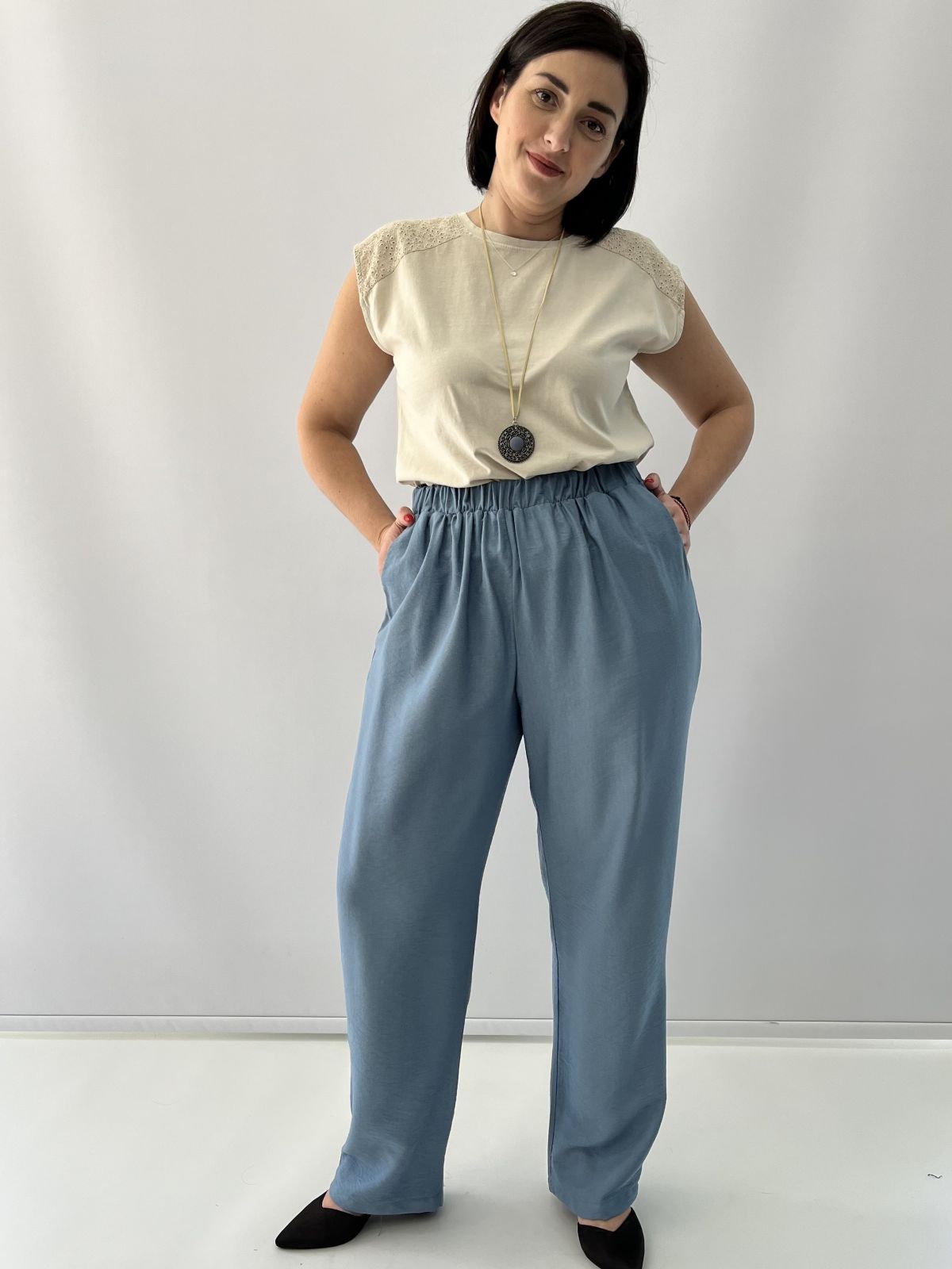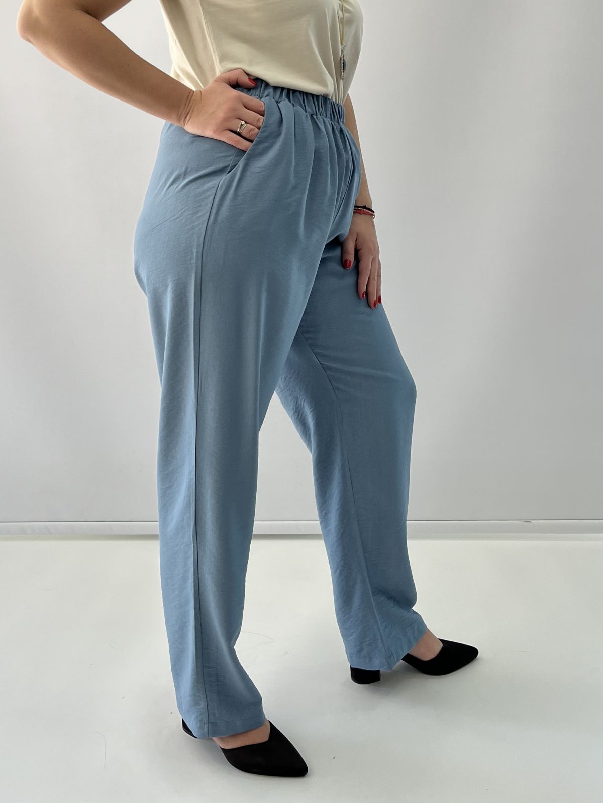 Παντελόνα με λάστιχο στη μλεση και τσέπες σιέλ