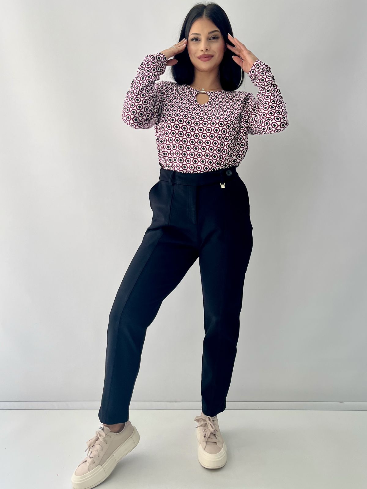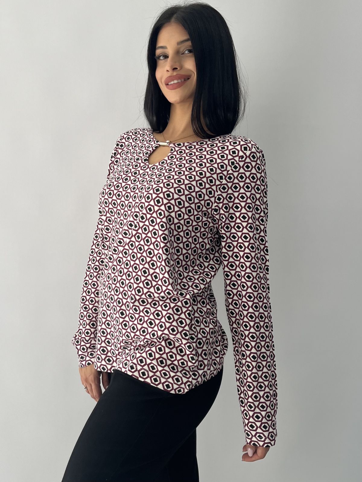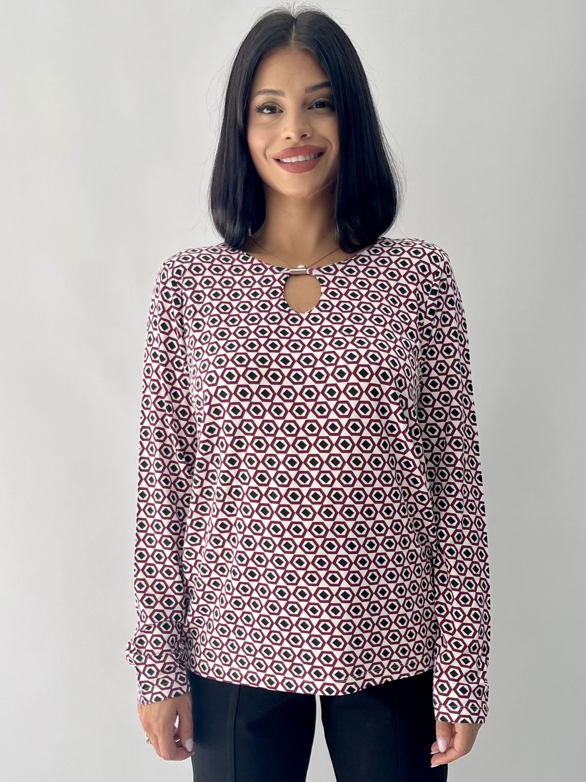 Μπλούζα εμπριμέ με λεπτομέρεια στο γιακά μπορντώ