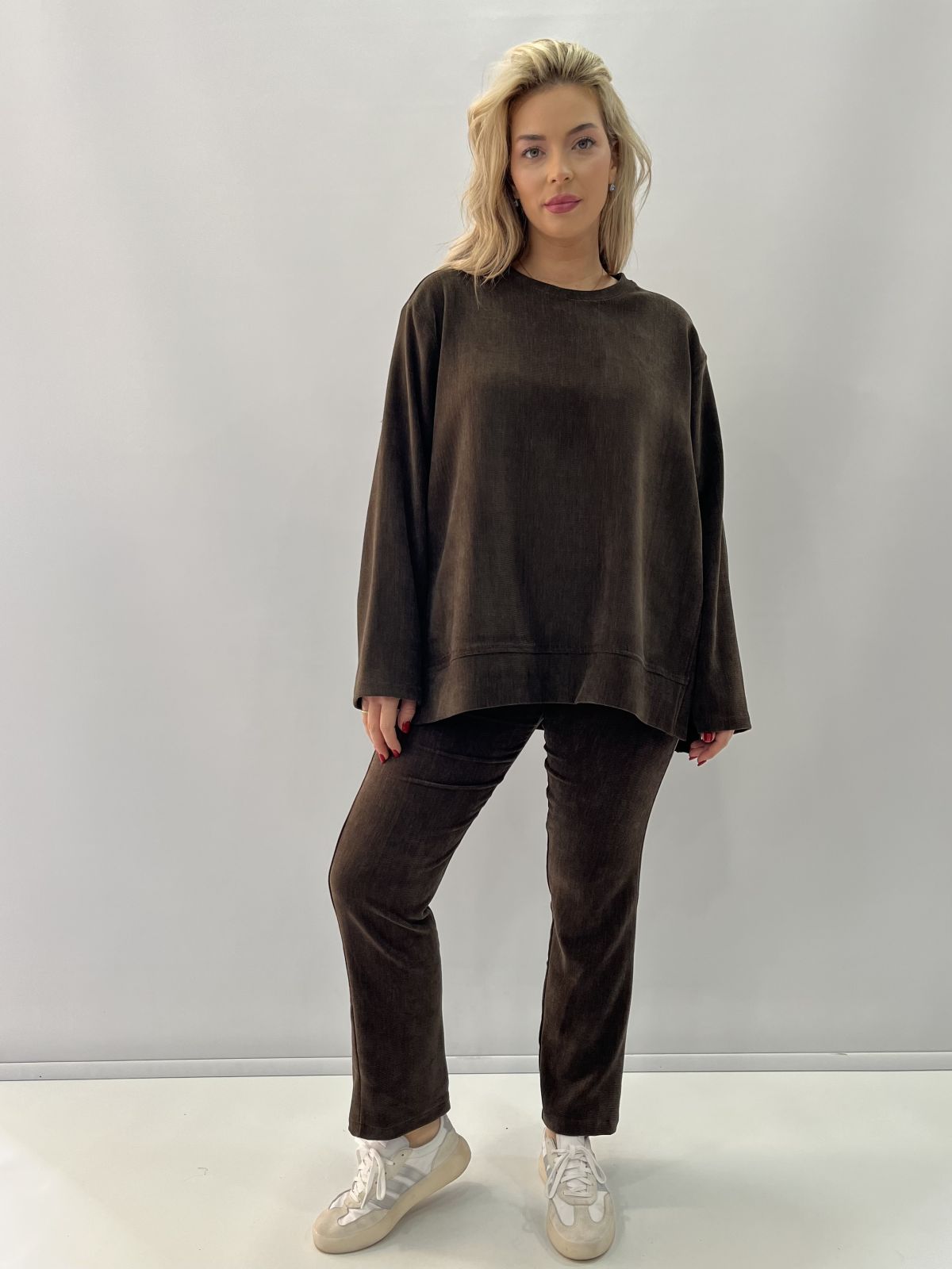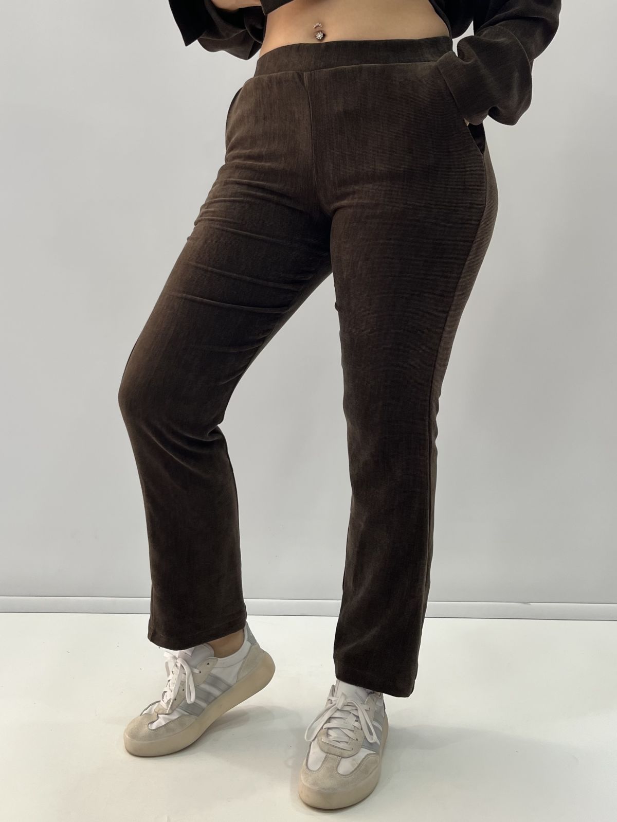 Παντελόνι φούτερ κοτλέ με λάστιχο στη μέση καφέ