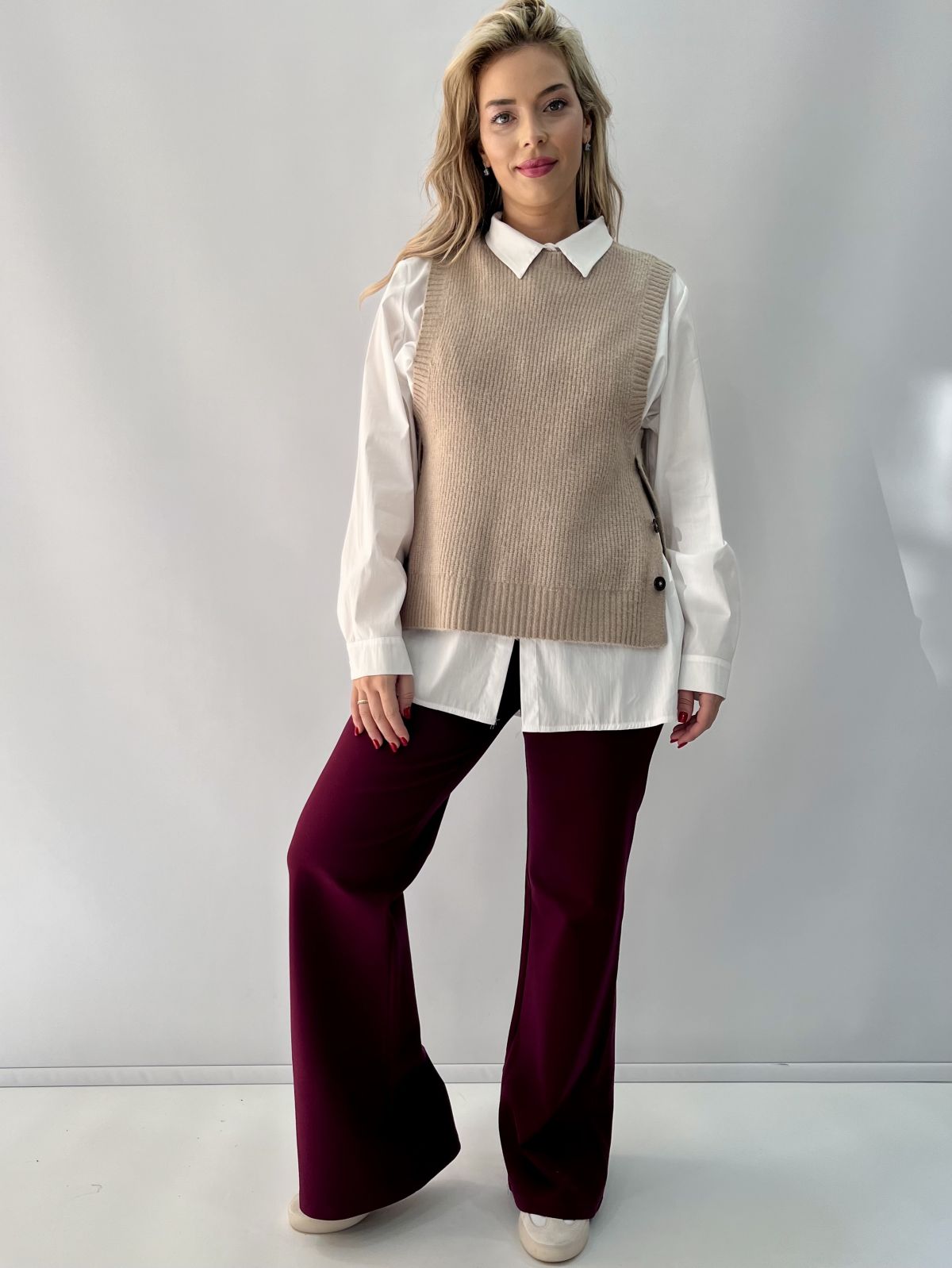 Παντελόνα καμπάνα με λάστιχο στη μέση μπορντώ