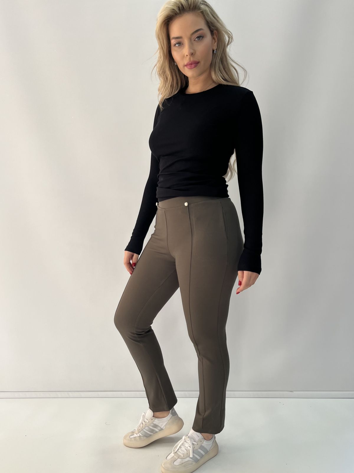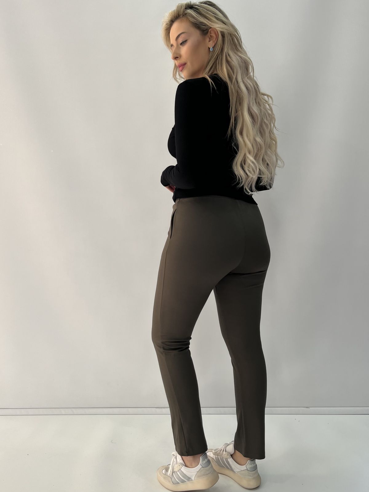 Παντελόνι διαγωνάλ ελαστικό με κουμπιά χακί