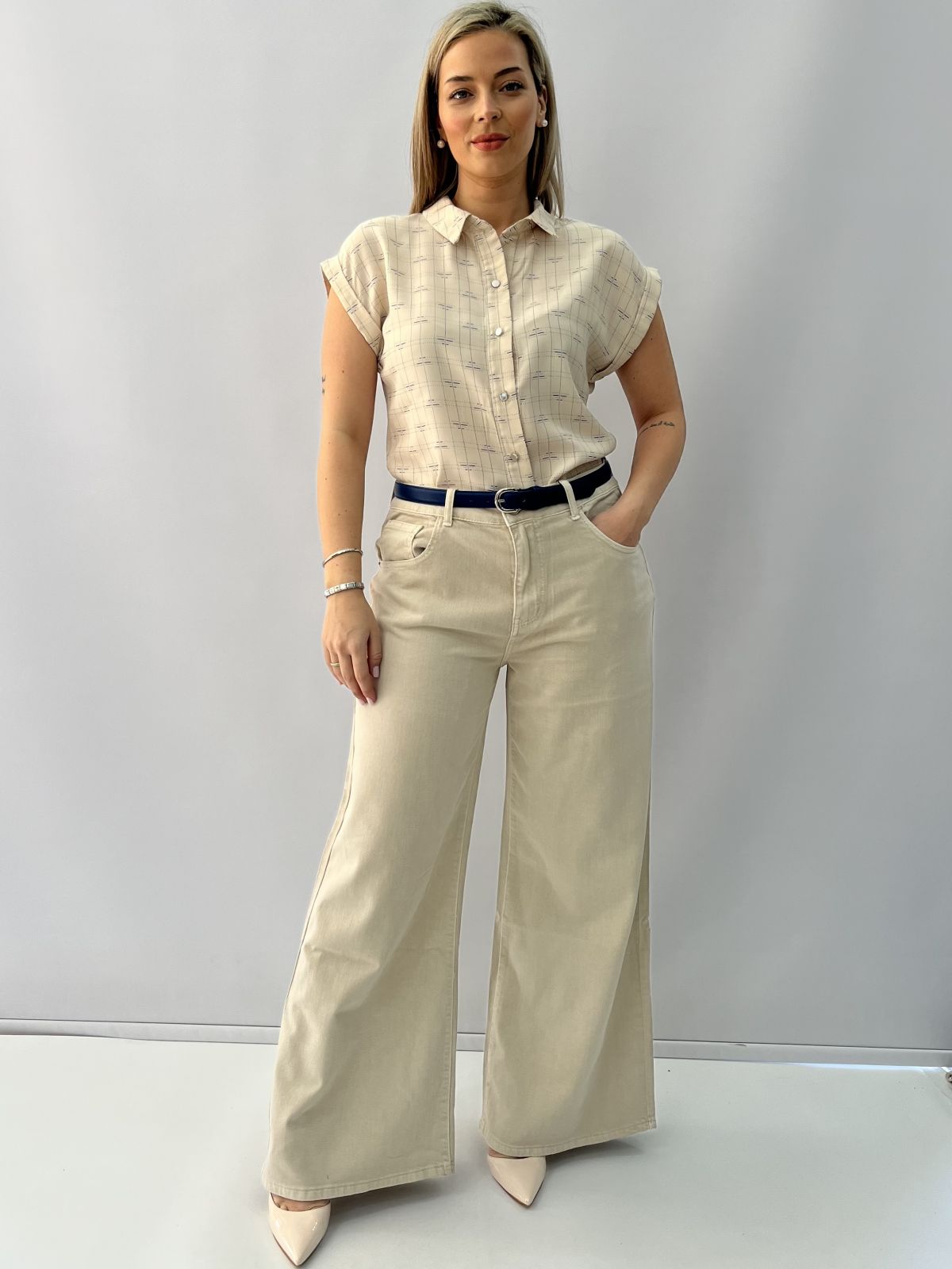 Παντελόνα jean ψηλόμεση μπεζ