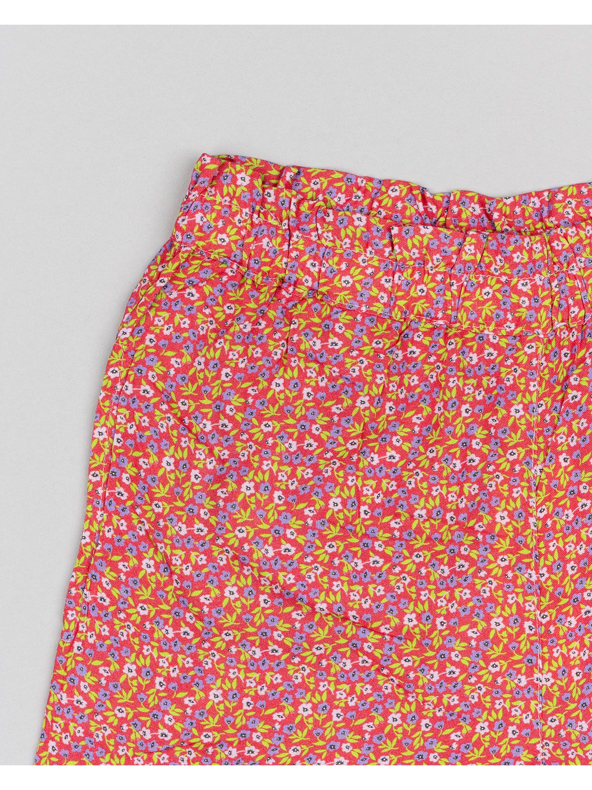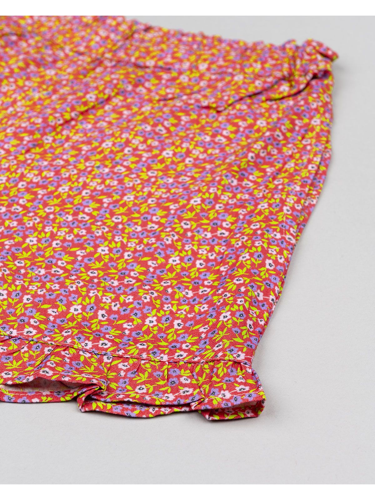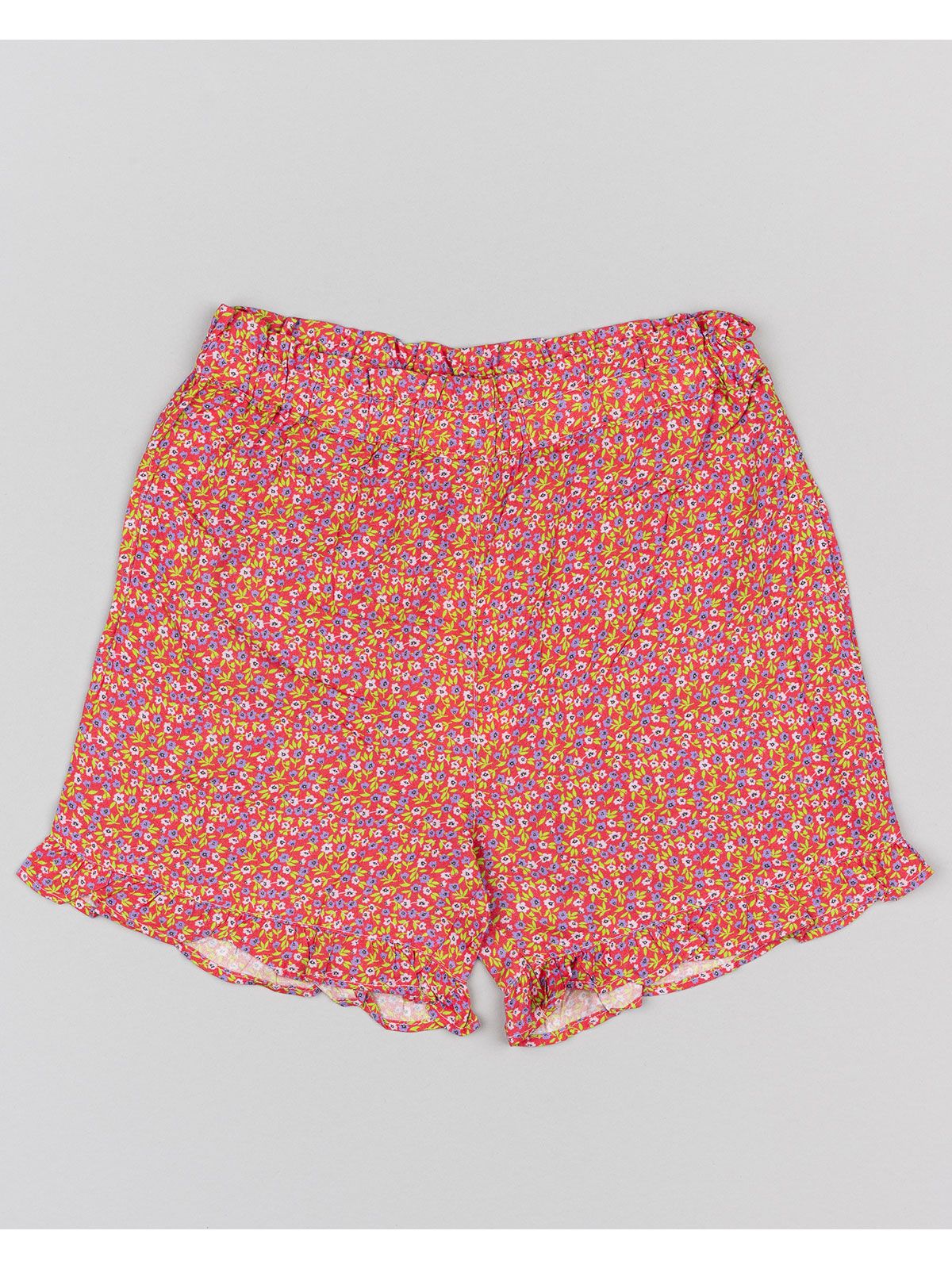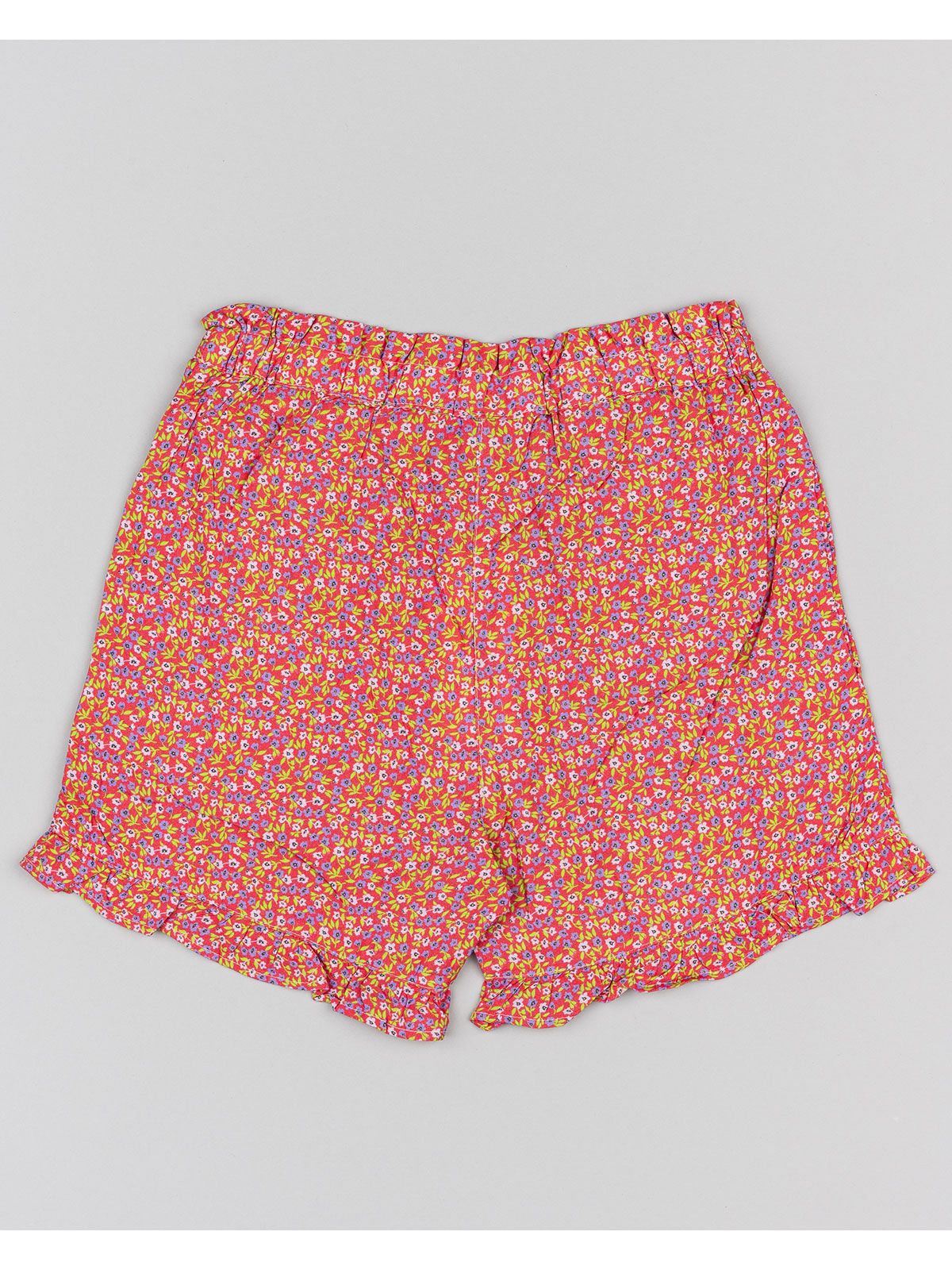Σορτς φλοράλ με λάστιχο και βολάν κοραλί