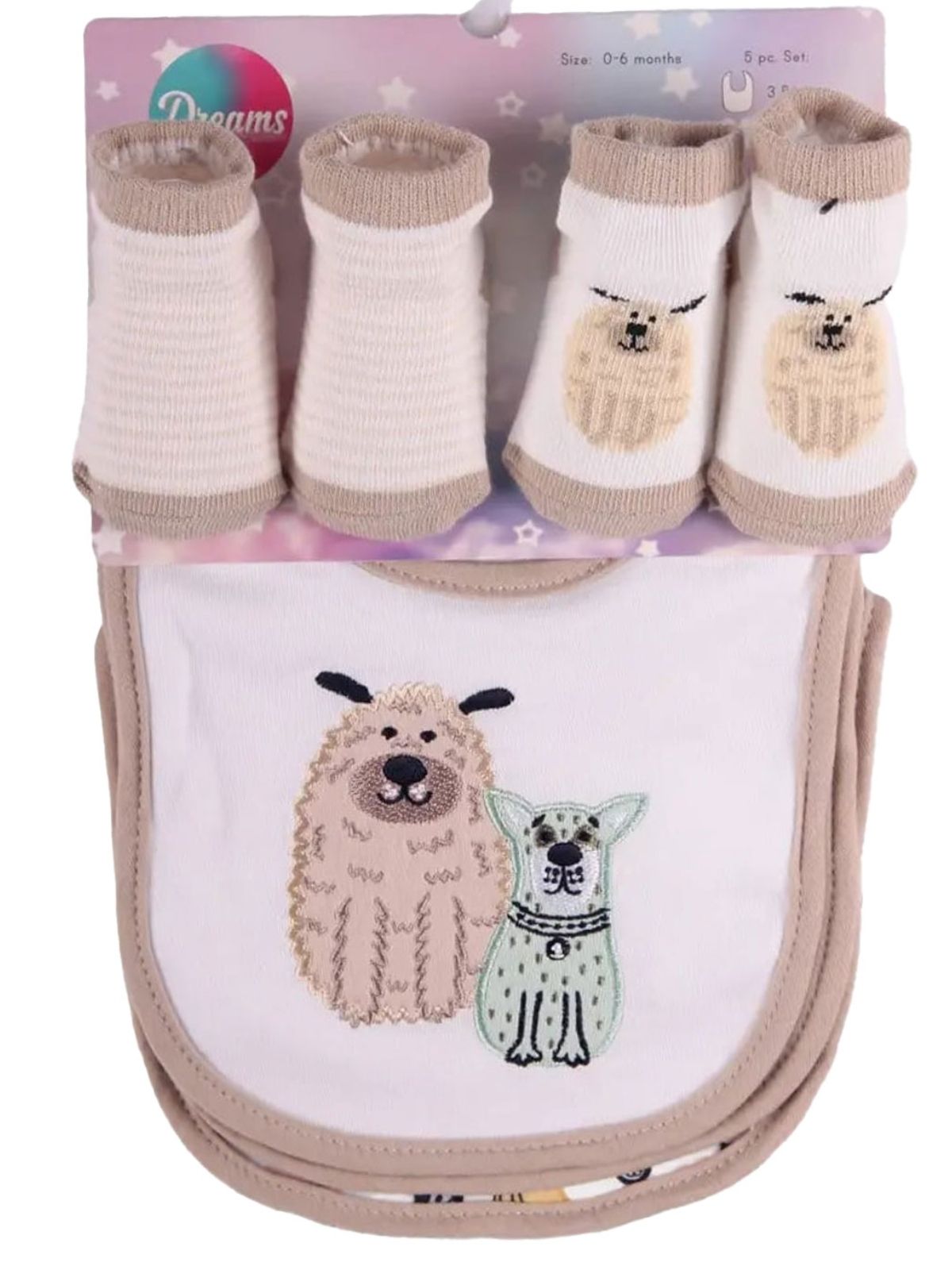 Βρεφικό πακέτο 3 σαλιάρες και 2 ζευγάρια κάλτσες καφέ