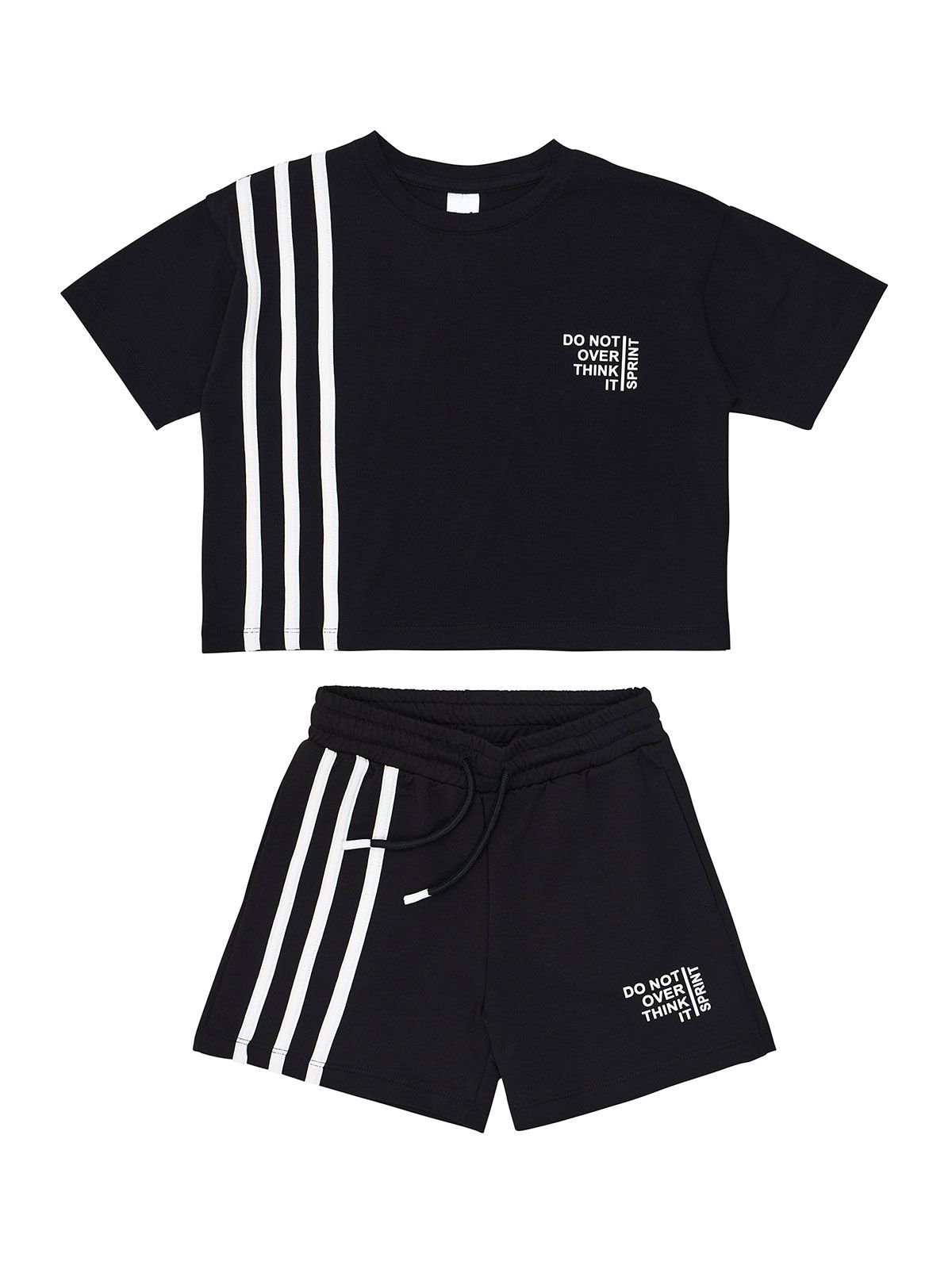 Σετ κροπ τοπ με σορτς με λευκές ρίγες μαύρο