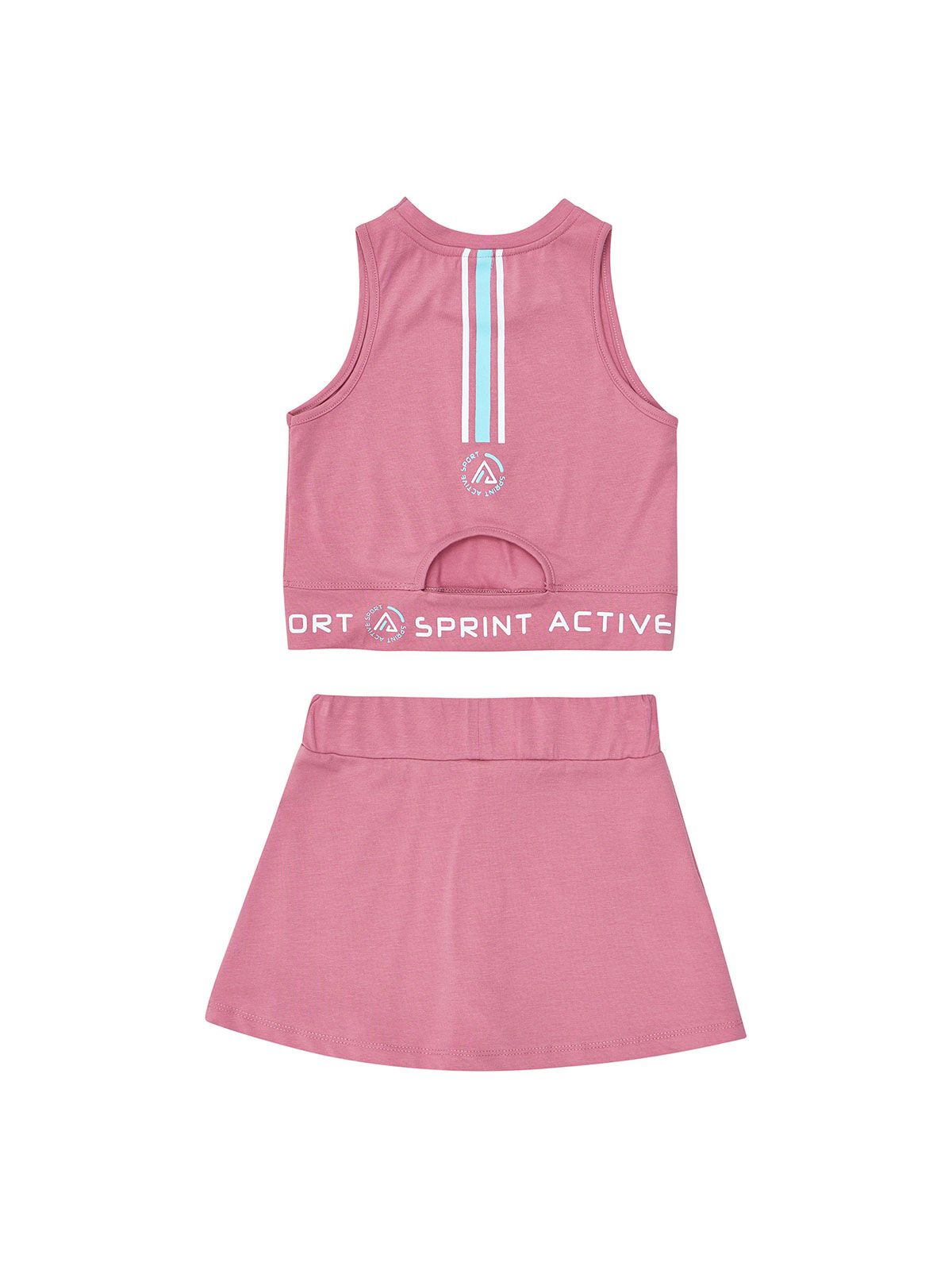 Σετ τοπ με άνοιγμα στην πλάτη και σορτς φούστα ροζ