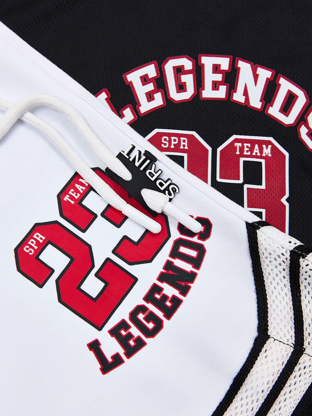 Σετ μπλούζα αμάνικη με print basketball και βερμούδα με λεπτομέρειες μαύρο