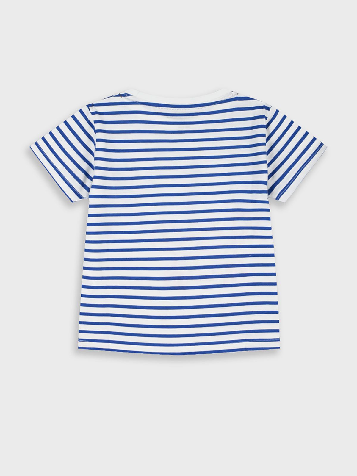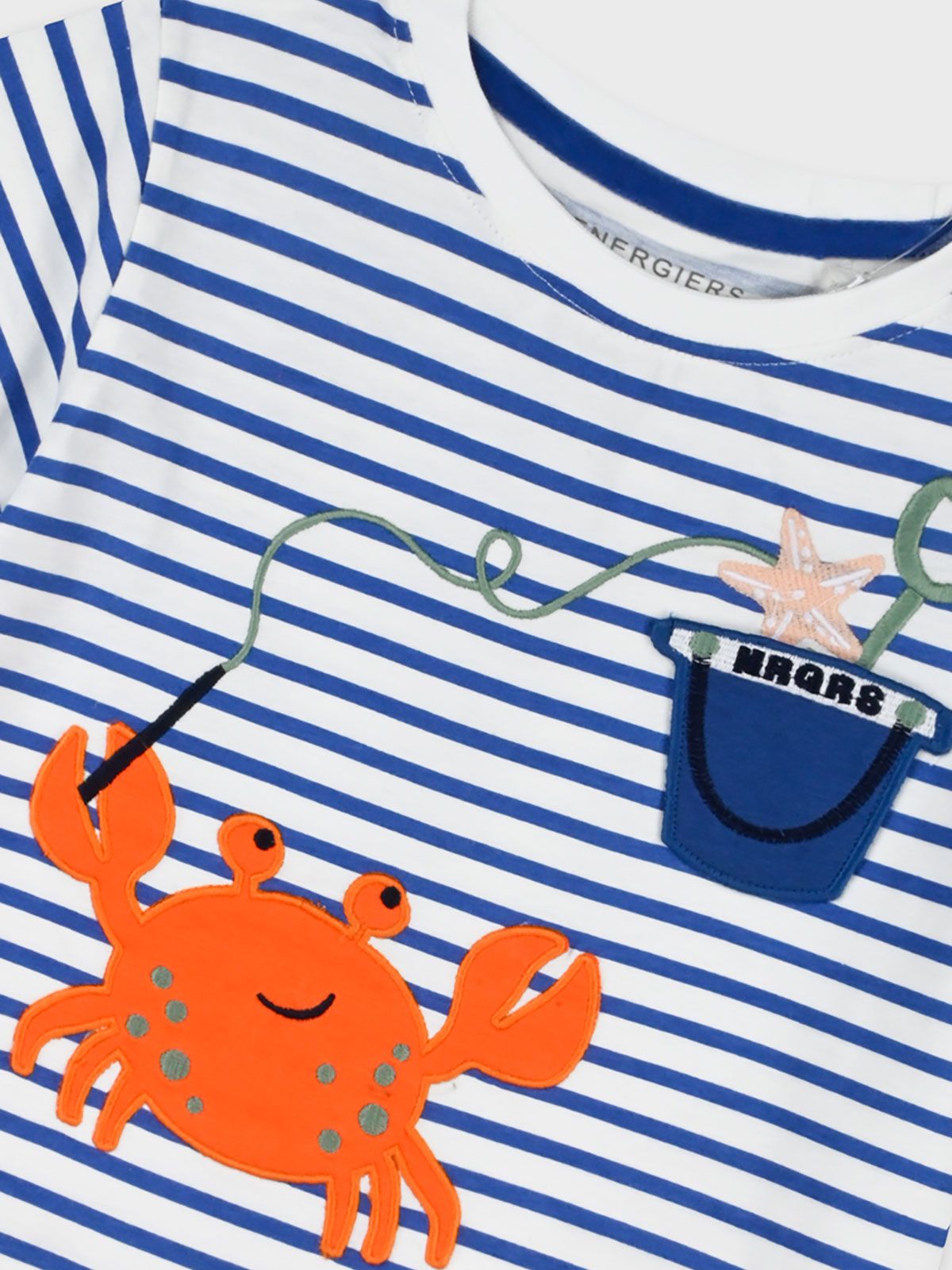 Μπλούζα ριγέ με καλοκαιρινό κέντημα και τσέπη μπλε
