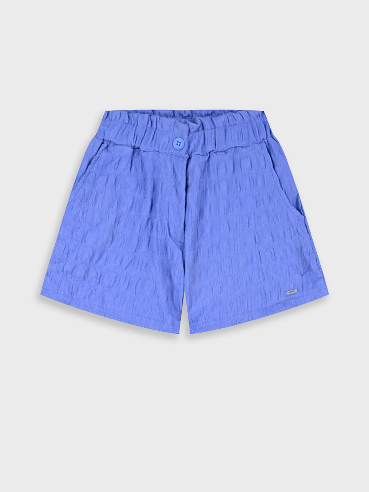 Σορτς μονόχρωμο γκοφρέ με τσέπες μπλε