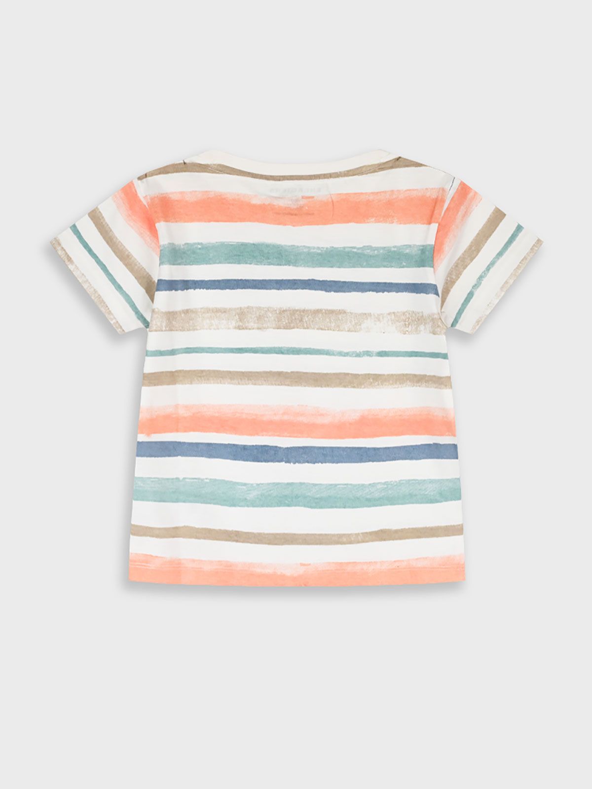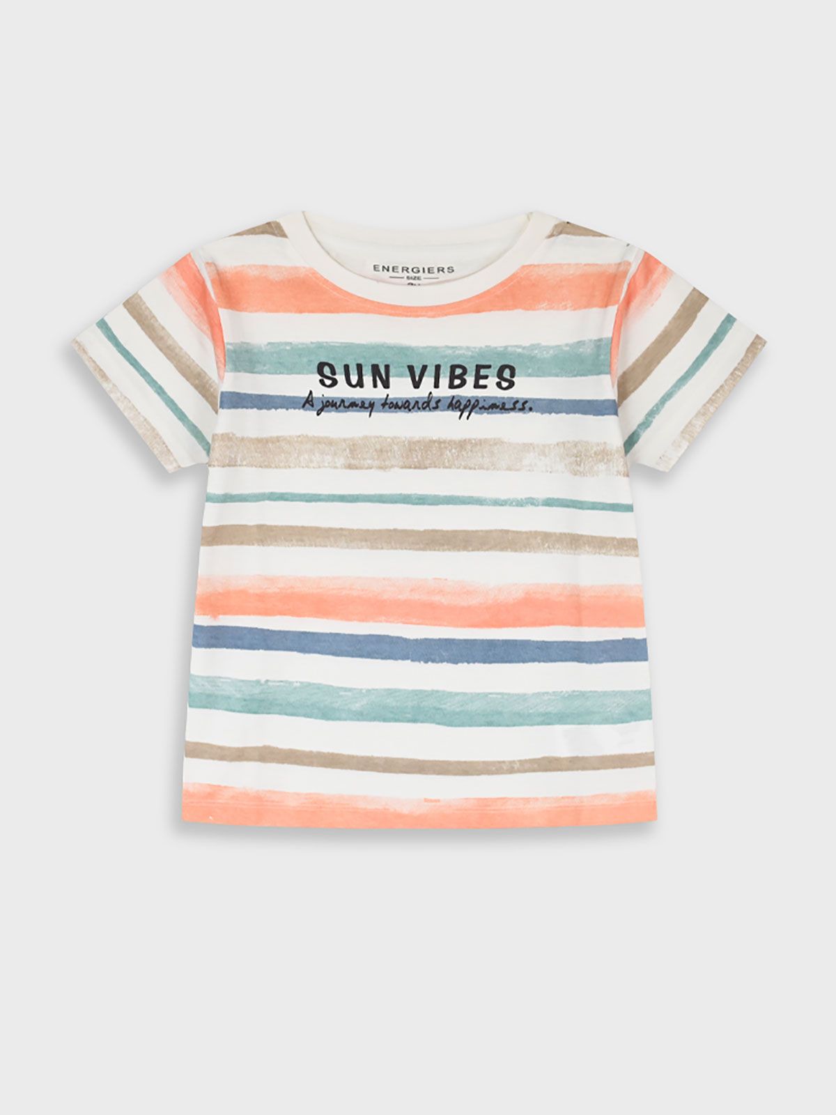 Μπλούζα κοντομάνικη ριγέ με print sun vibes πορτοκαλί