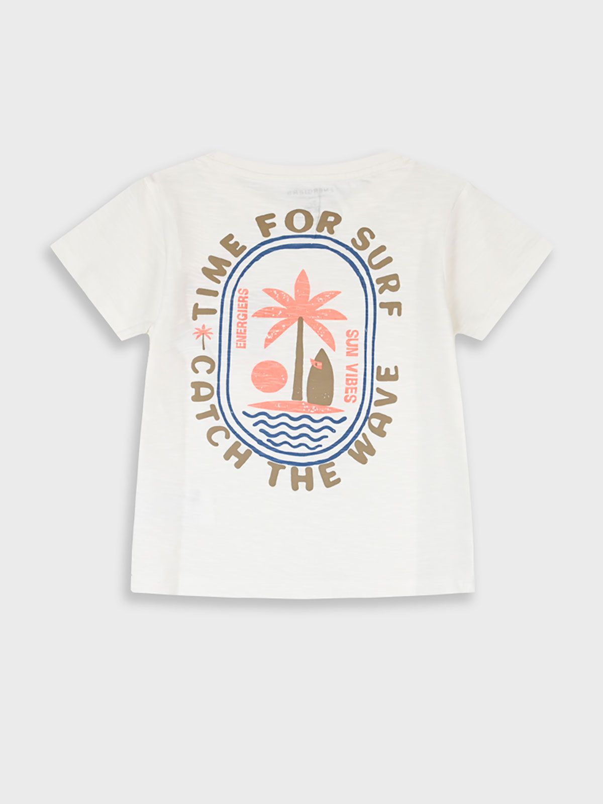 Μπλούζα κοντομάνικη ριγέ με print time for surf βανίλια