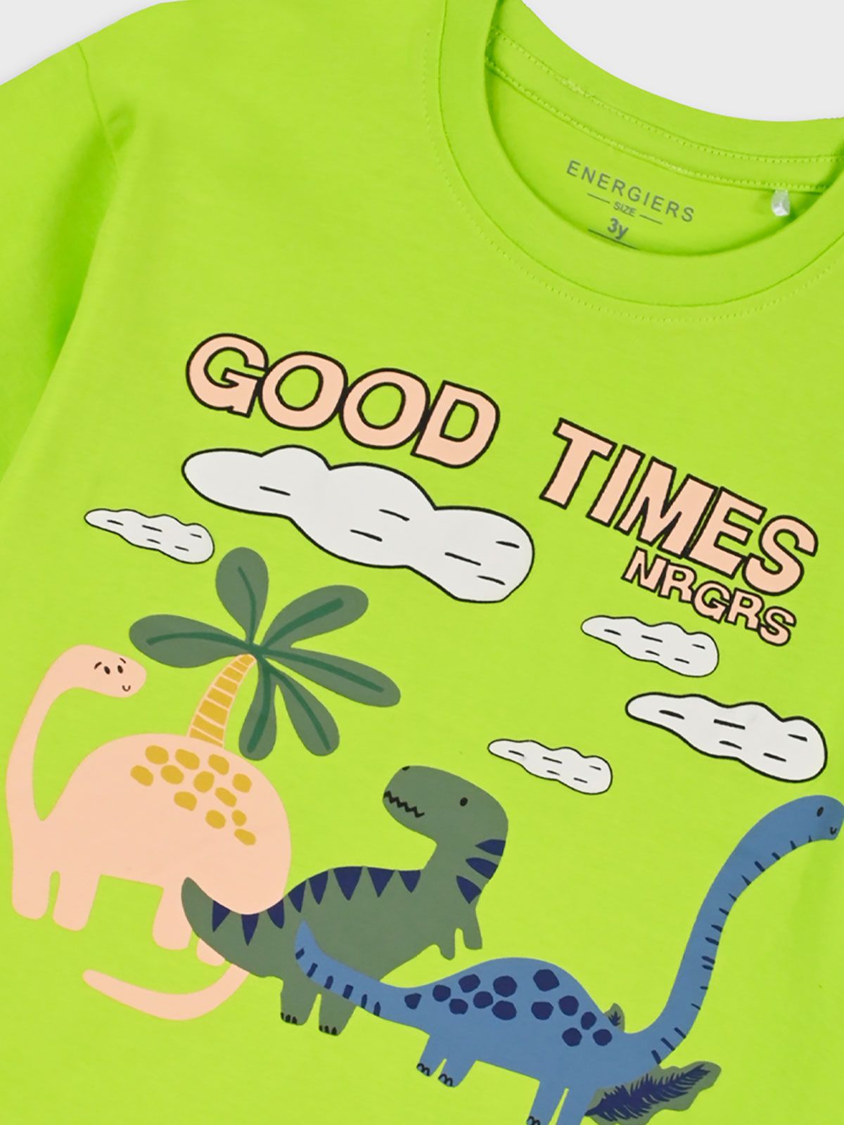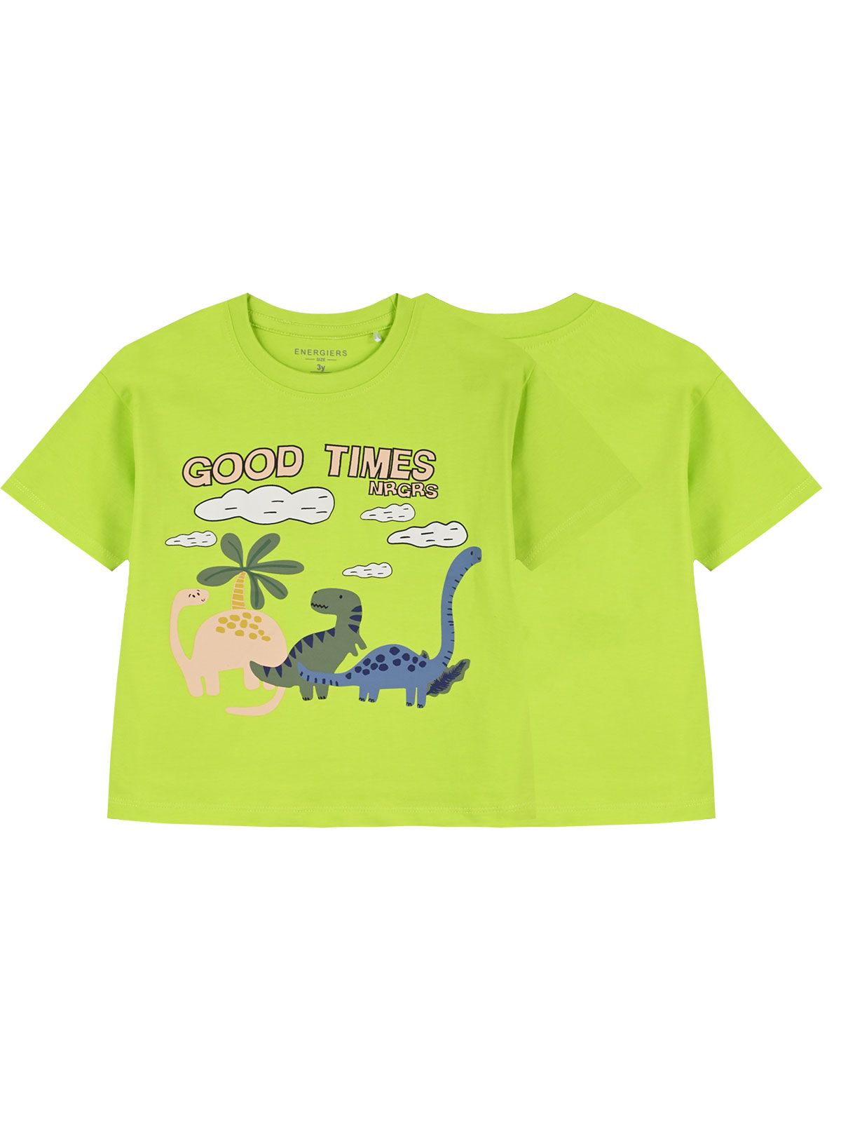 Μπλούζα κοντομάνικη ριγέ με print δεινόσαυροι λαχανί