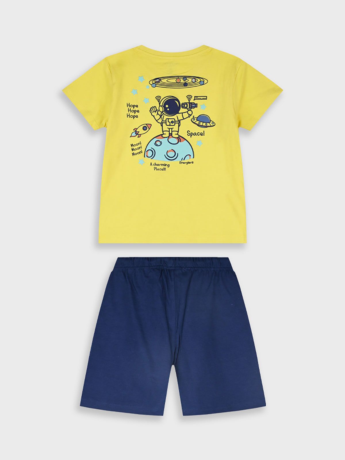 Σετ βαμβακερό με print astronauts travel in space κίτρινο