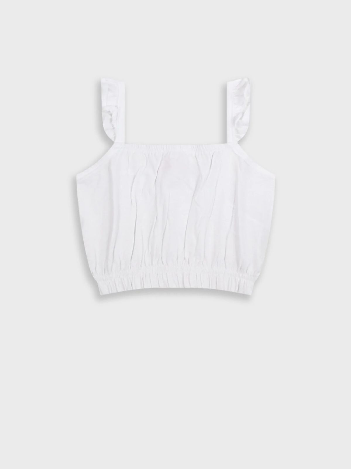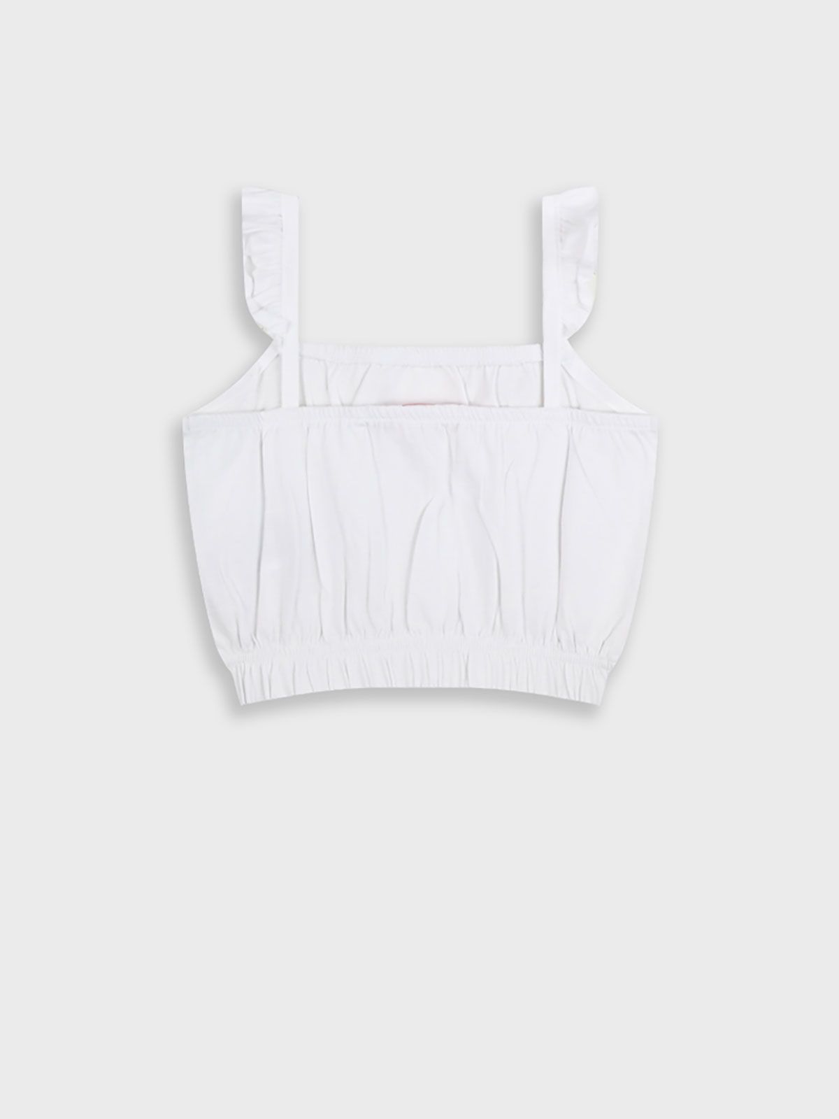 Τοπ μονόχρωμο βαμβακερό με βολάν λευκό