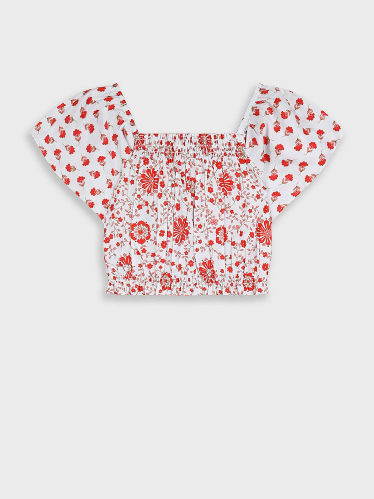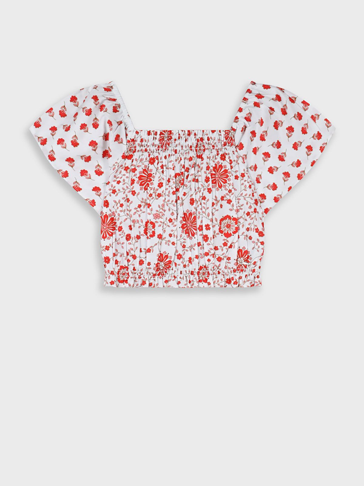 Τοπ φλοράλ με λάστιχο στο τελείωμα κόκκινο