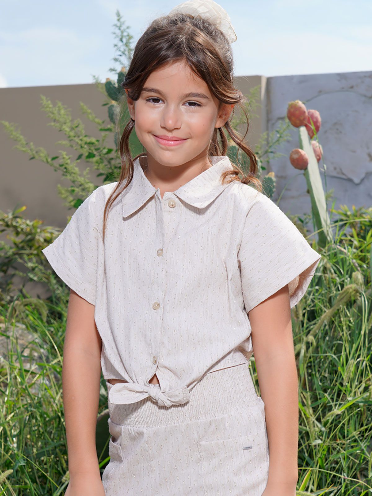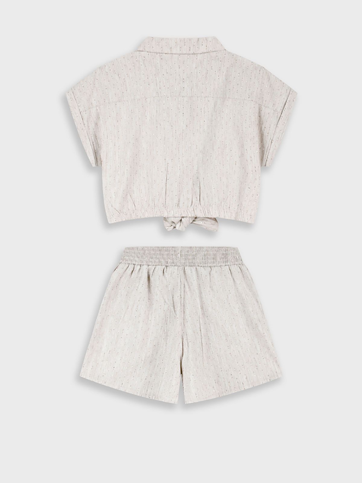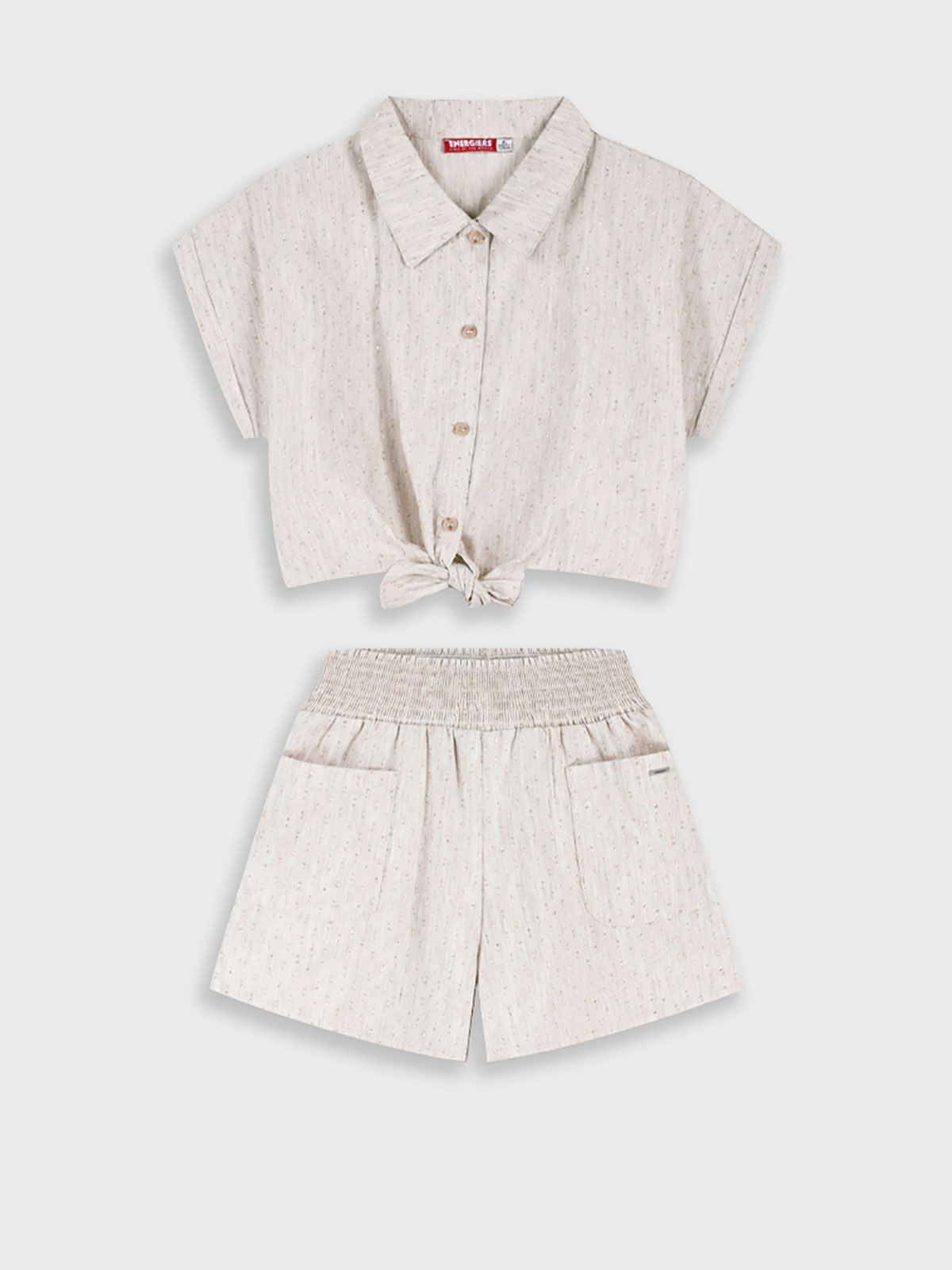 Σετ πουκάμισο με χρυσοκλωστή και σορτς μπεζ