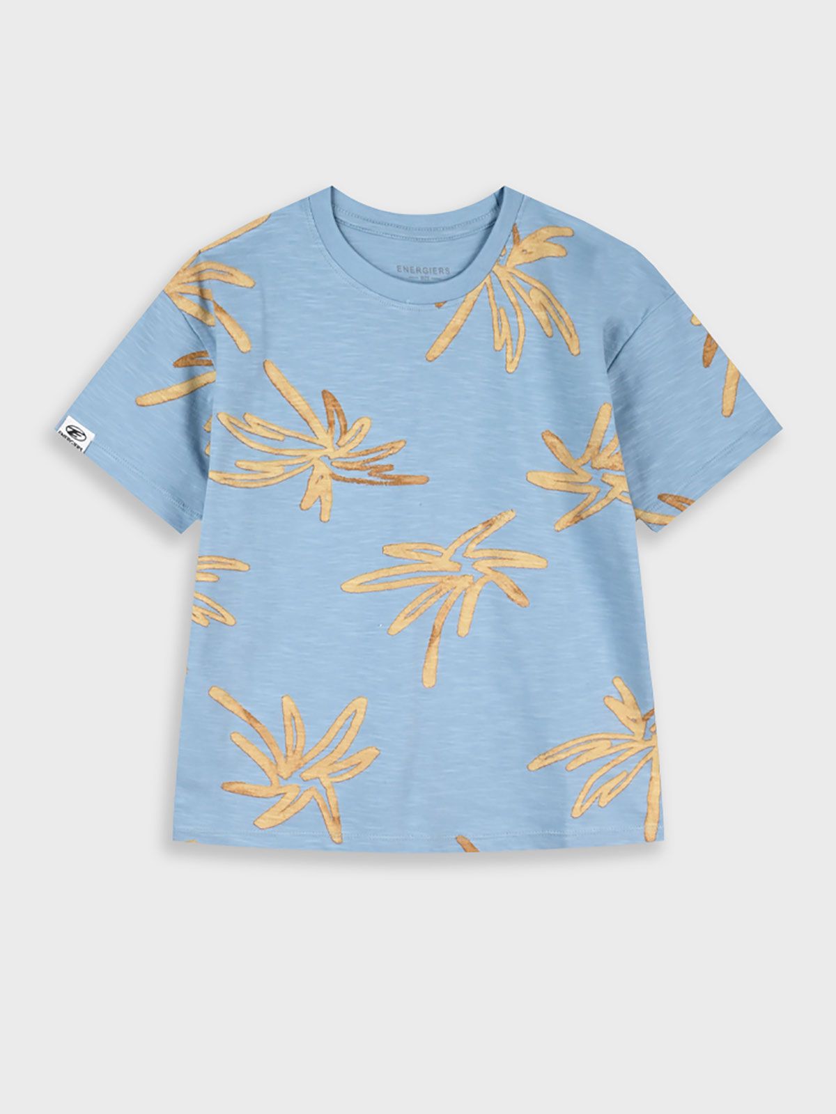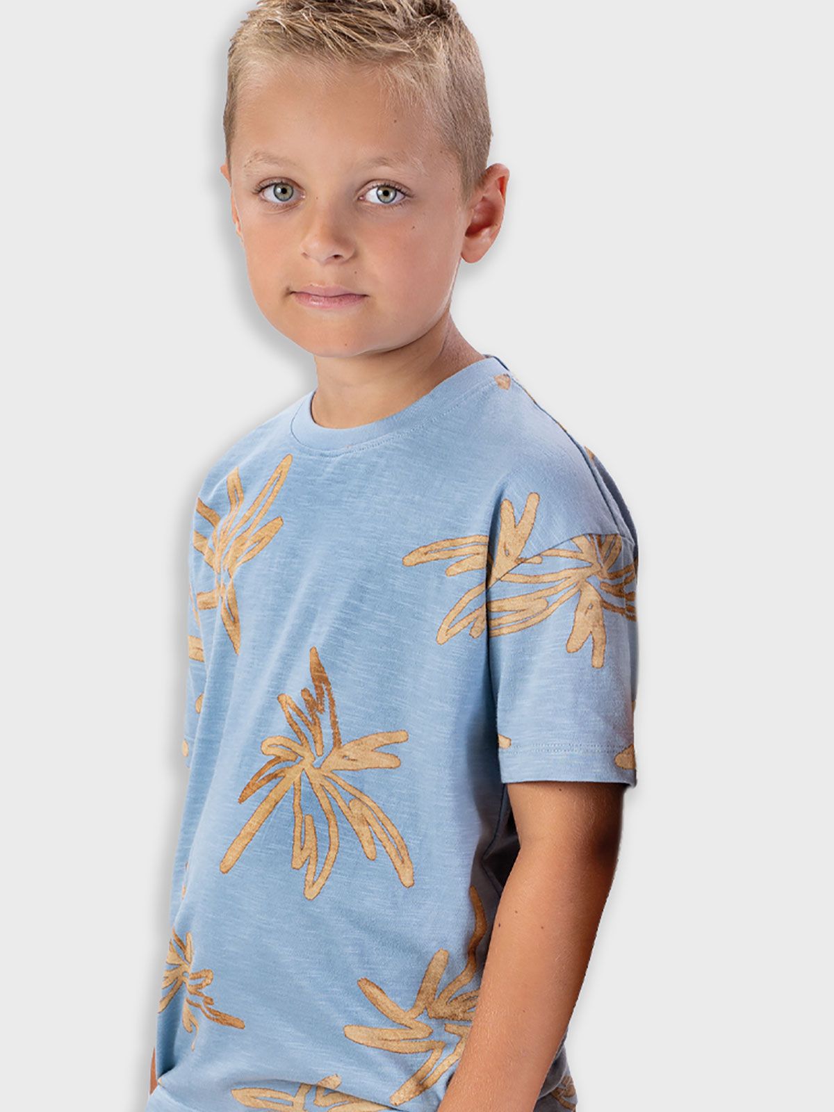 Μπλούζα κοντομάνικη dusty με print φοινίκες γαλάζιο