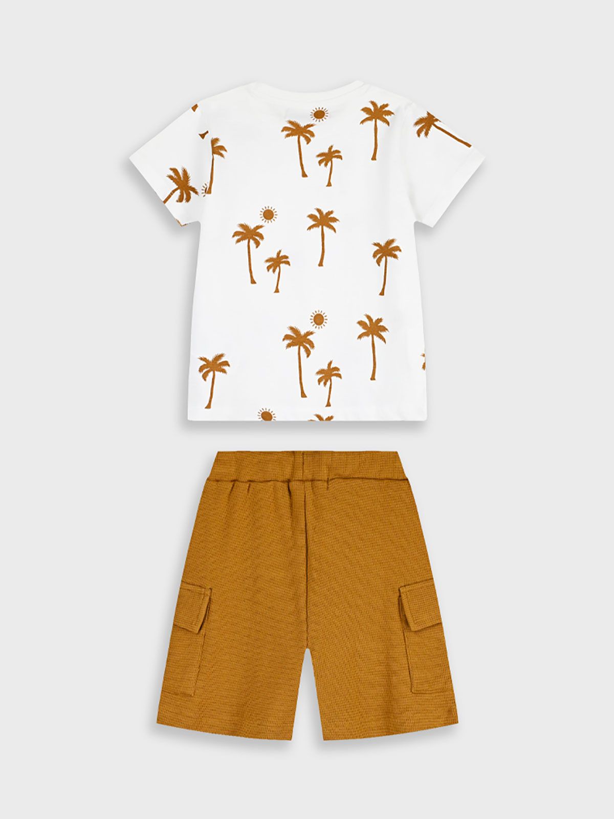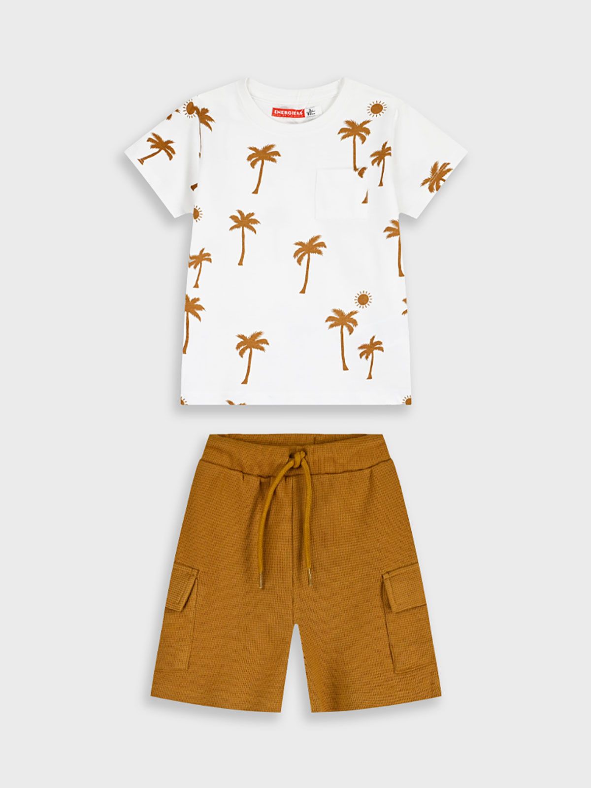 Σετ μπλούζα με print φοίνικες και cargo βερμούδα καφέ