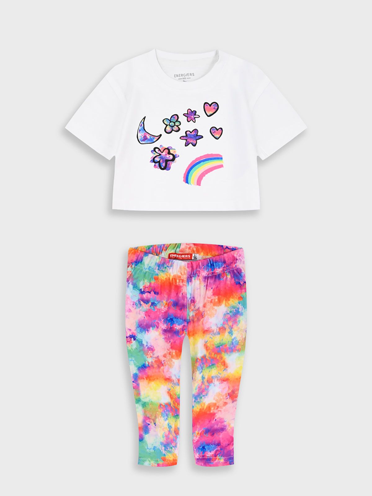 Σετ μπλούζα και κολάν print rainbow φούξια