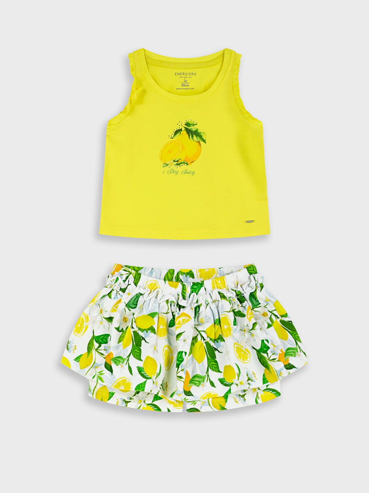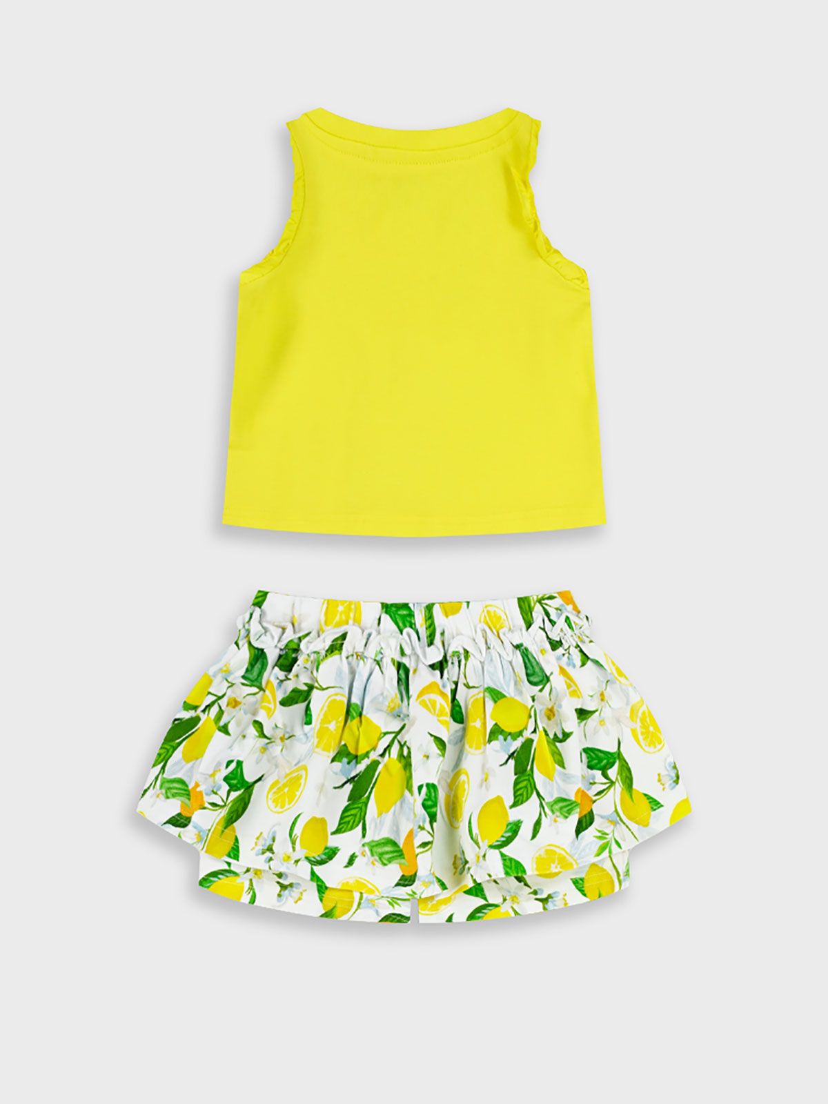 Σετ τοπ και σορτς φούστα με print lemon's life κίτρινο