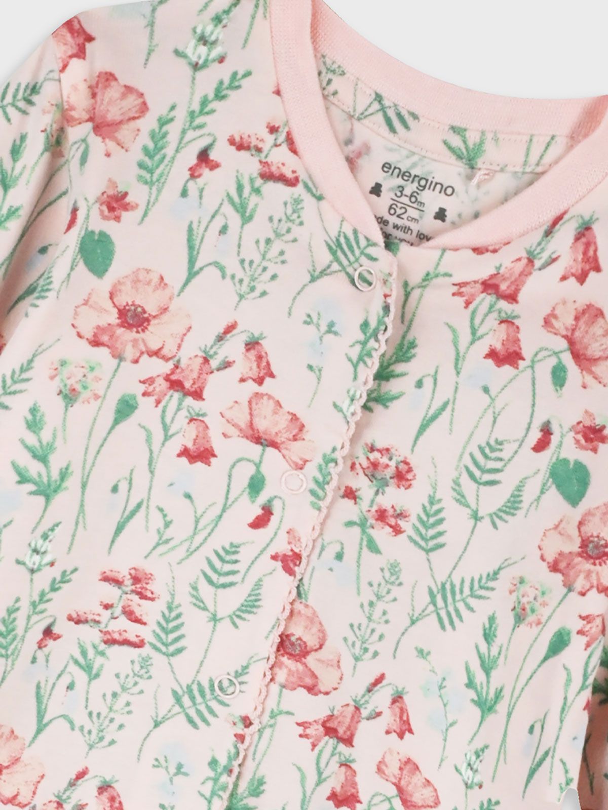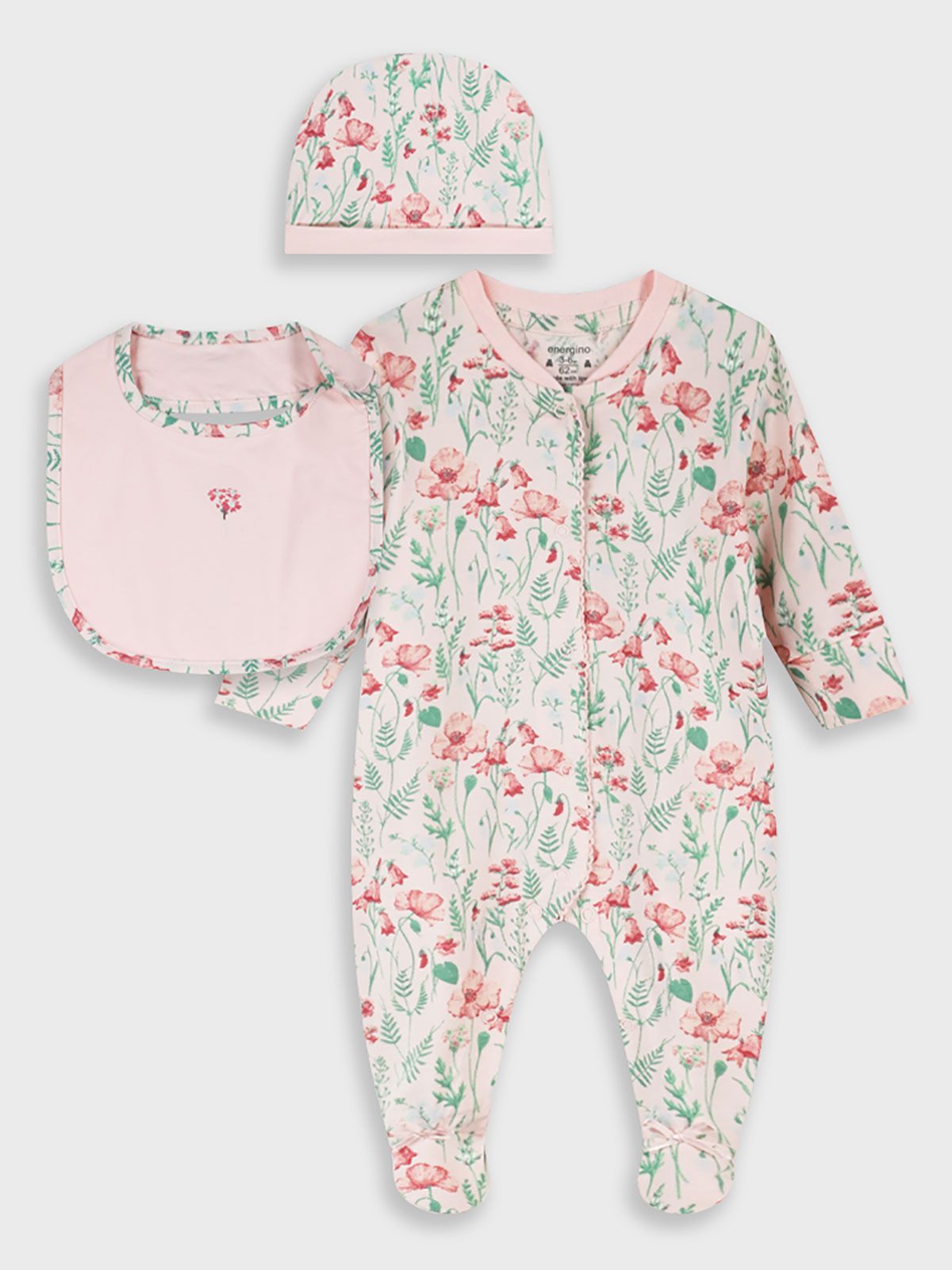 Σετ φορμάκι με σκουφάκι και σαλιάρα print vintage floral (3 τεμάχια) ροζ