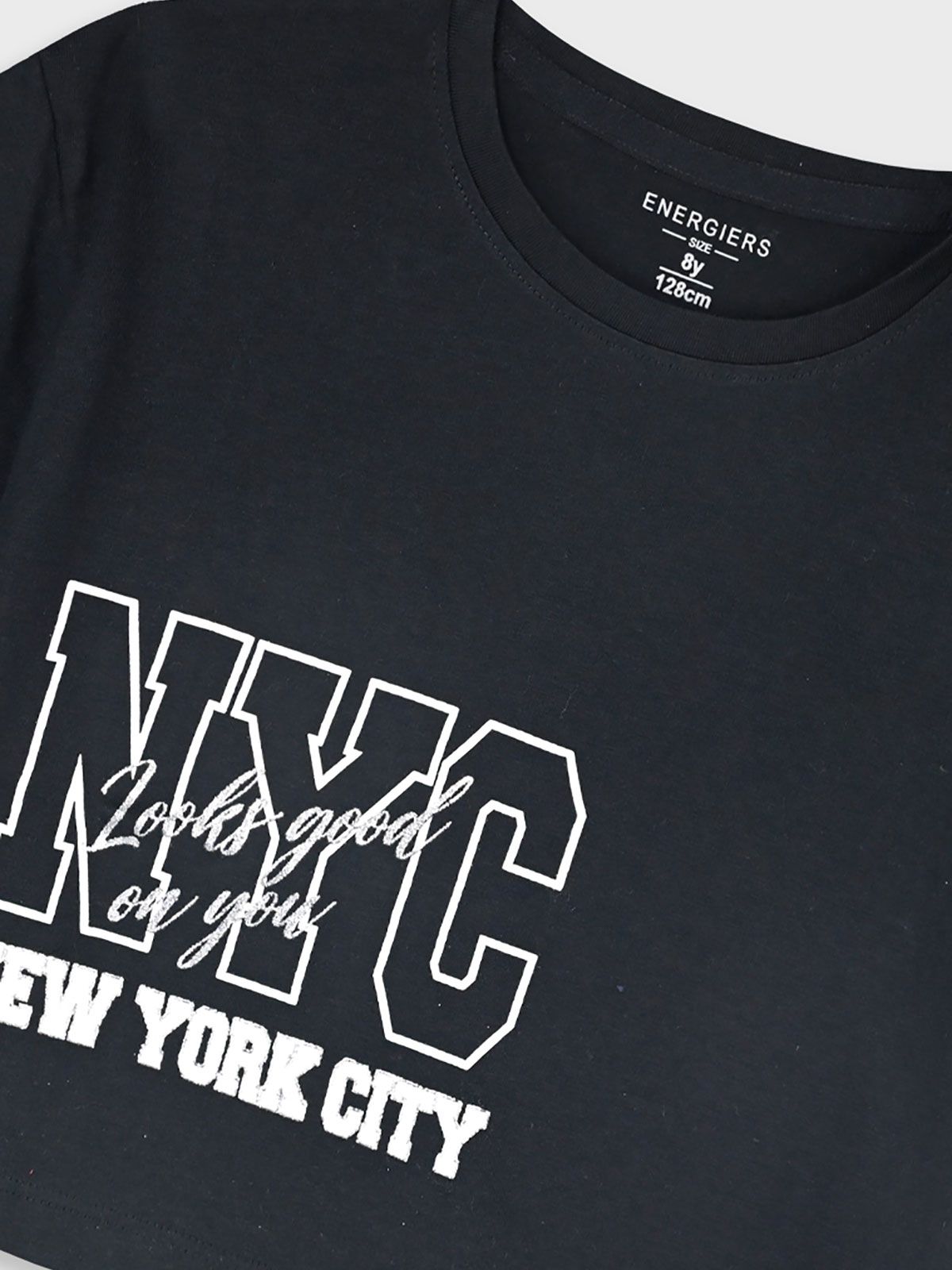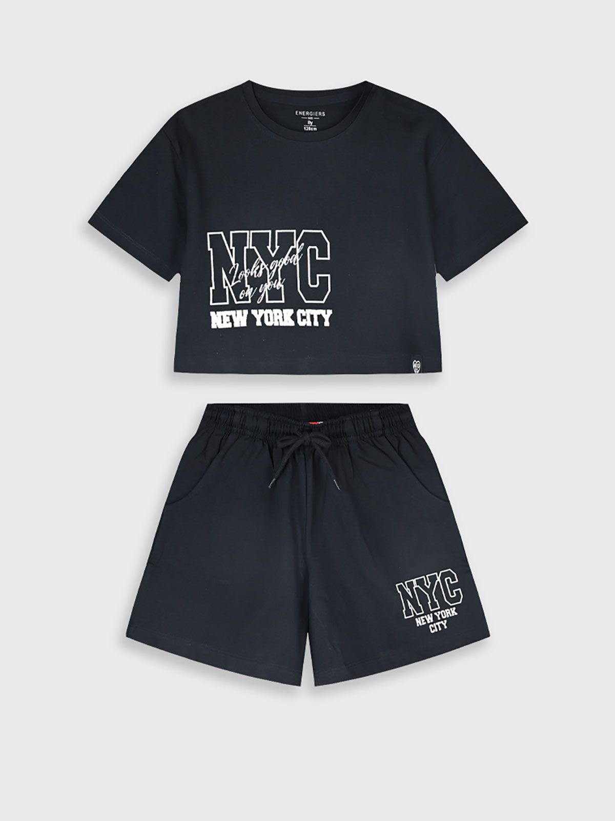Σετ κροπ τοπ και βερμούδα με print NYC μαύρο