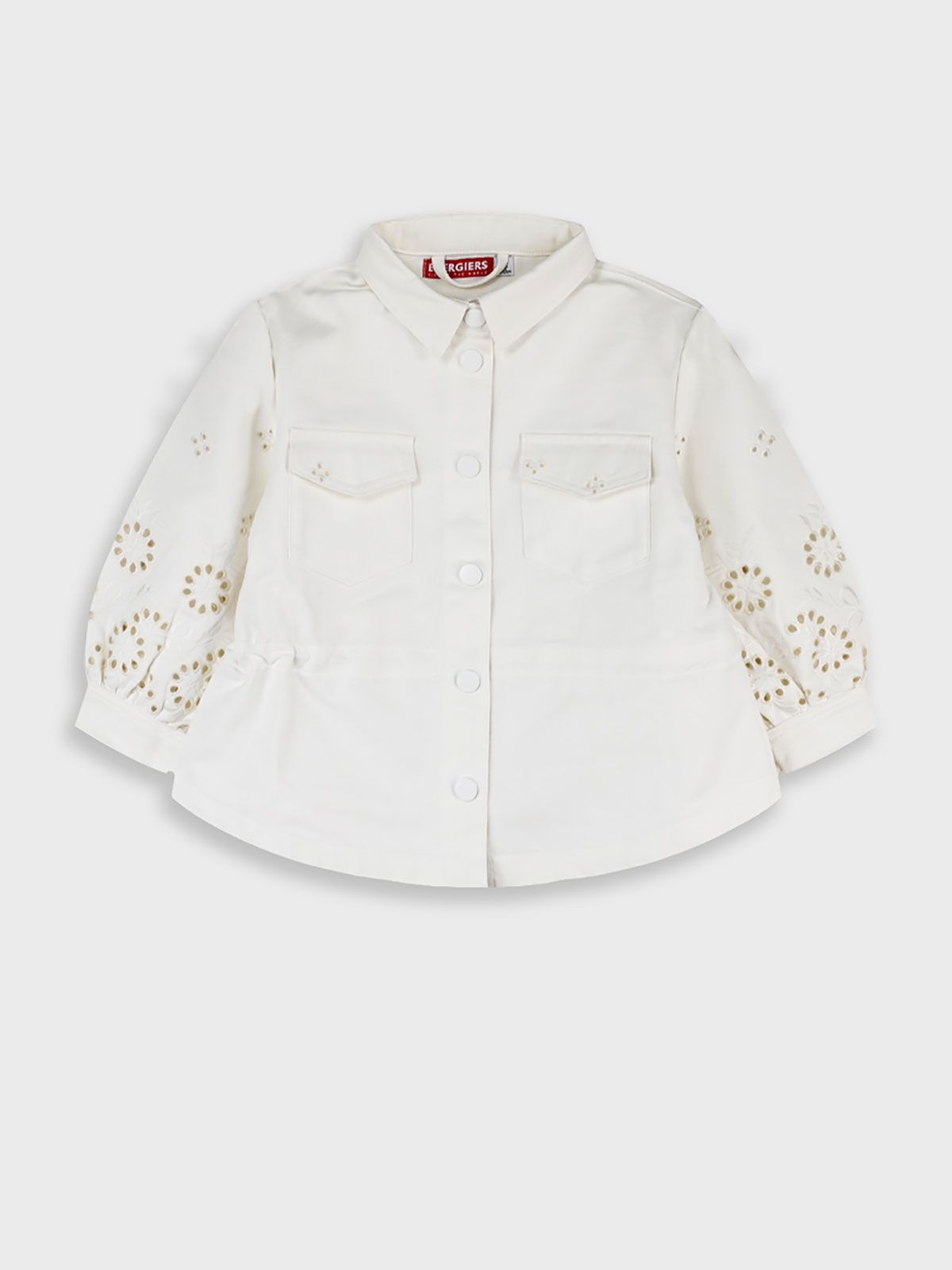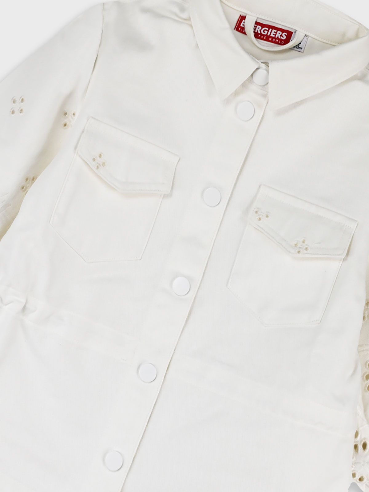 Τζιν τζάκετ με κοφτό κέντημα λουλούδια κρεμ