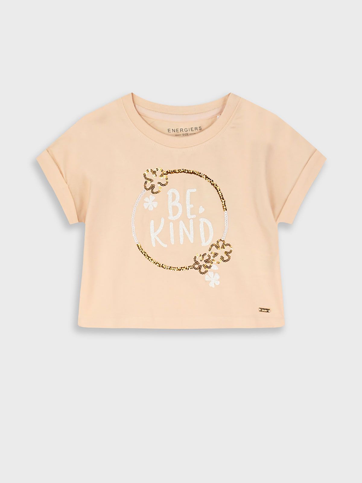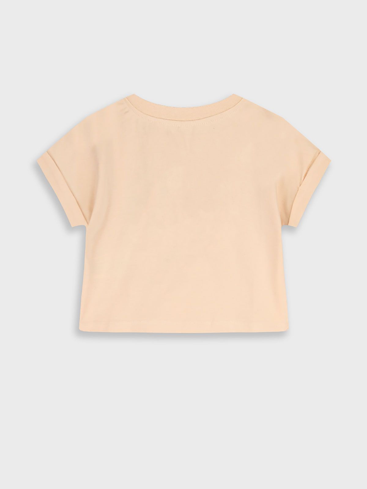 Μπλούζα κοντομάνικη με κέντημα λουλούδια σομόν