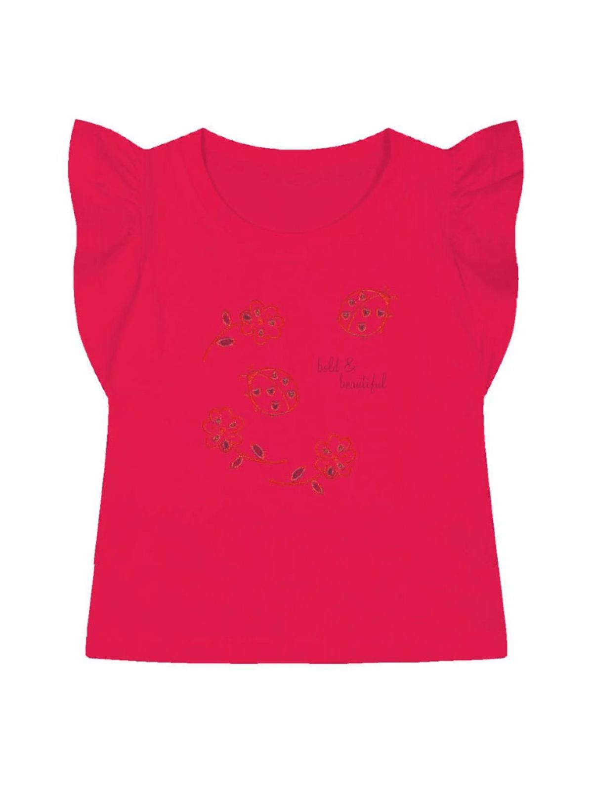 Μπλούζα κοντομάνικη με ανοιξιάτικο κοφτό κέντημα κόκκινο