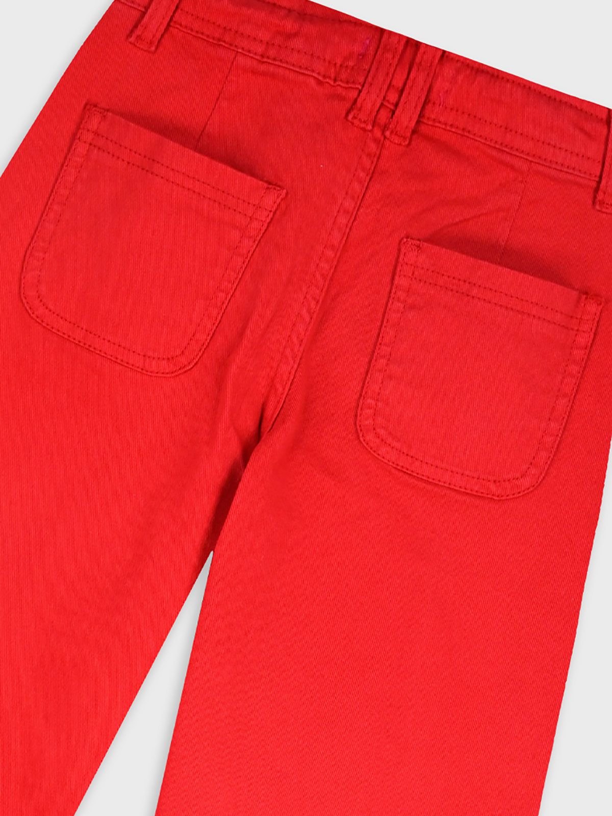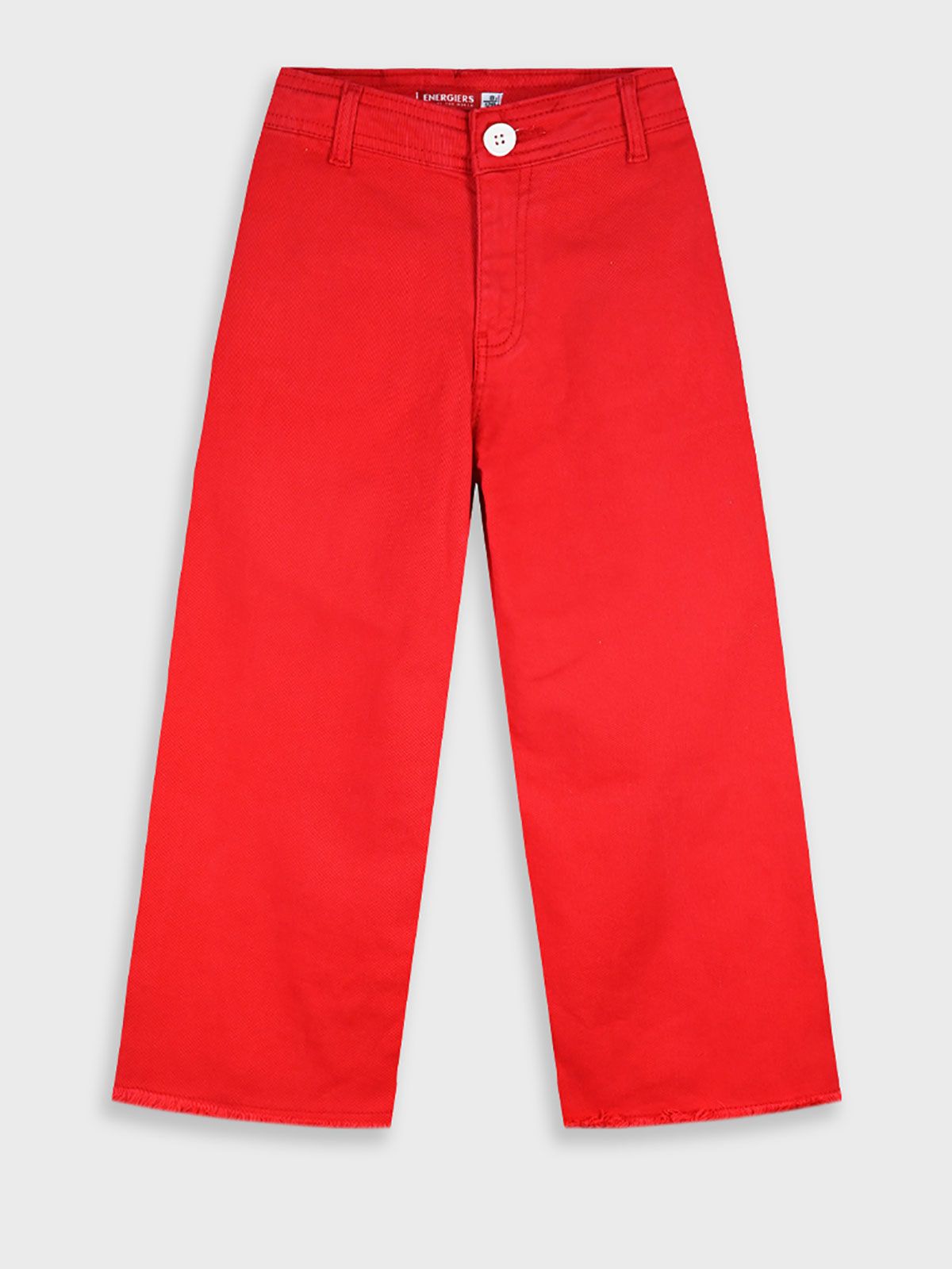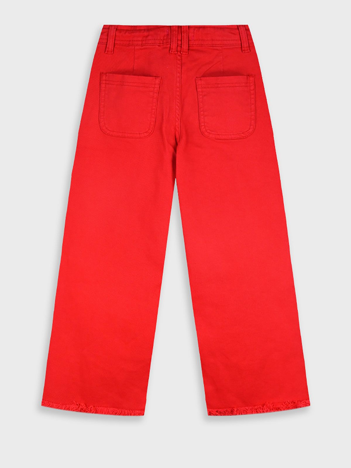 Παντελόνα τζιν μονόχρωμη με ξέφτια στο κάτω μέρος κόκκινο