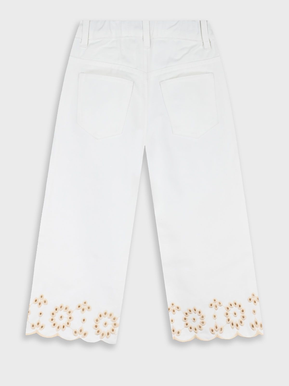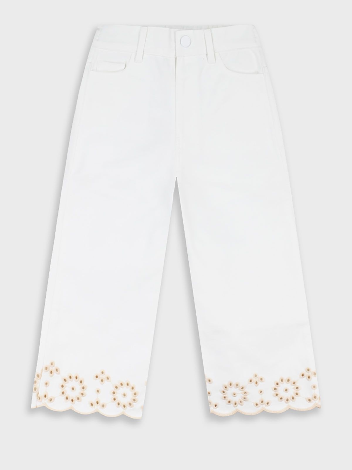 Παντελόνα τζιν με κοφτό κέντημα λουλούδια κρεμ