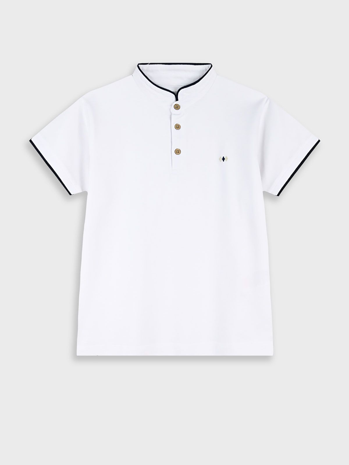 Μπλούζα με μάο γιακά και κουμπιά λευκό
