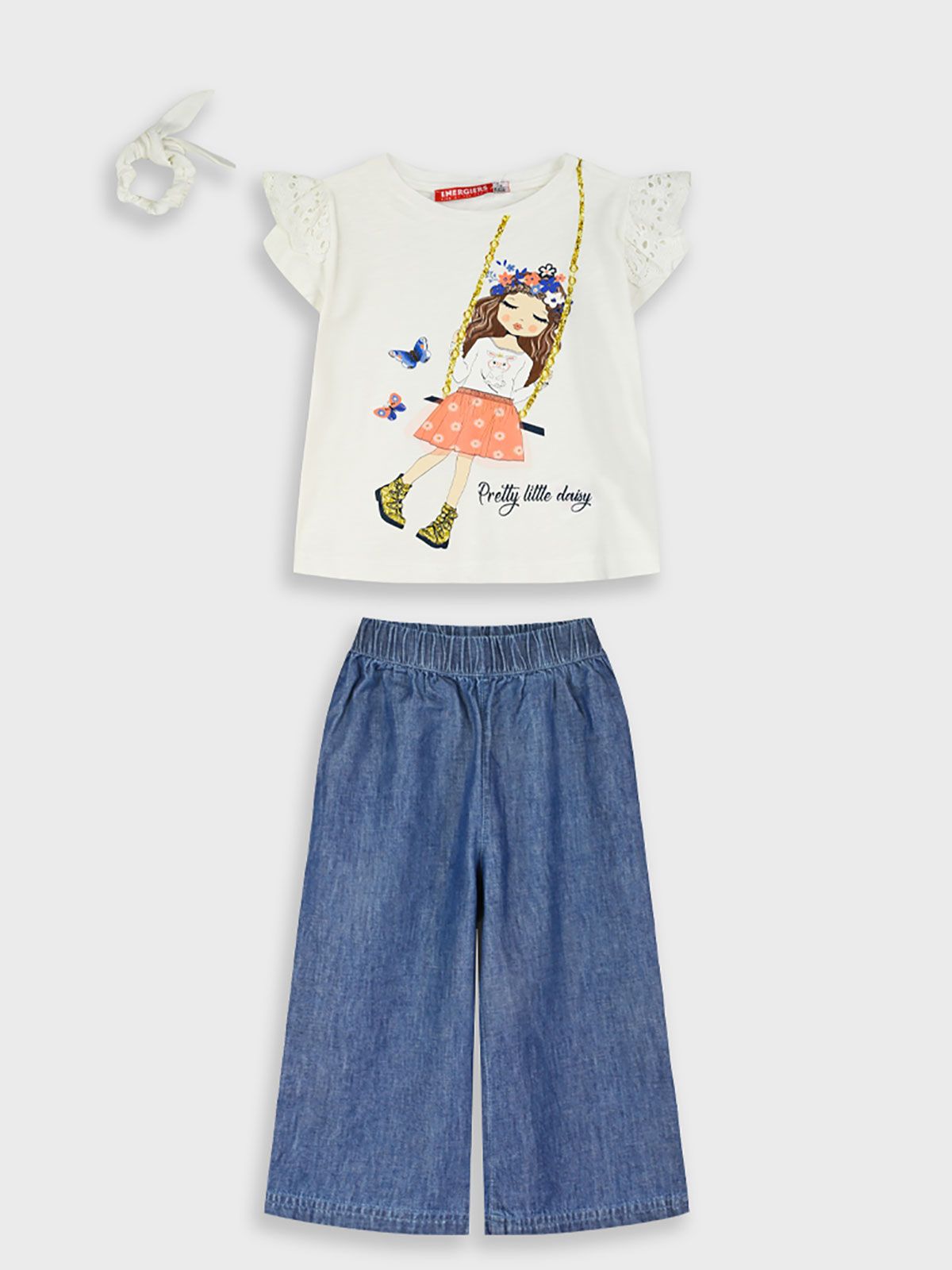 Σετ μπλούζα με τζιν παντελόνα και schrunchy μπλε