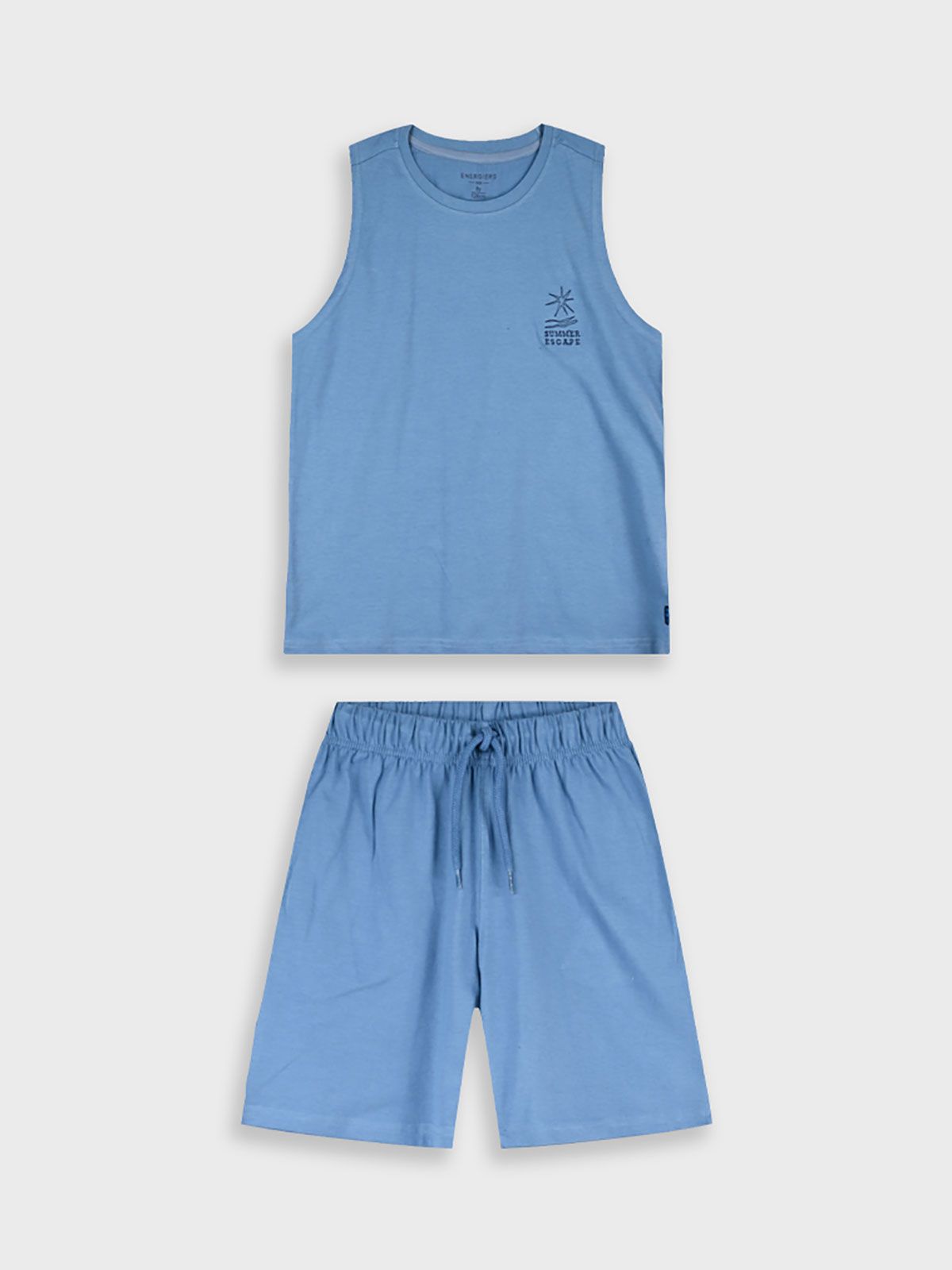 Σετ βαμβακερό με αμάνικη μπλούζα και print summer escape μπλε