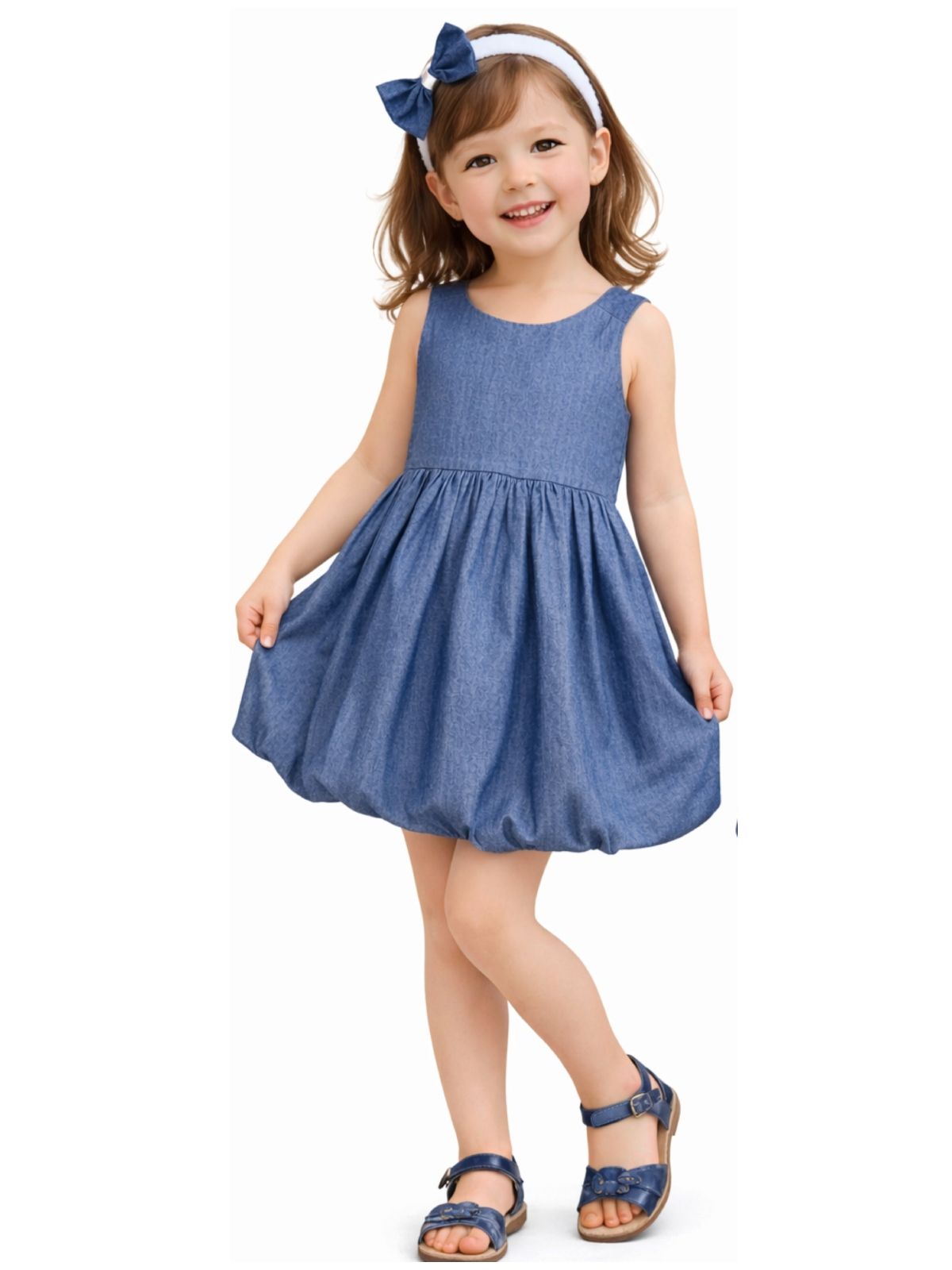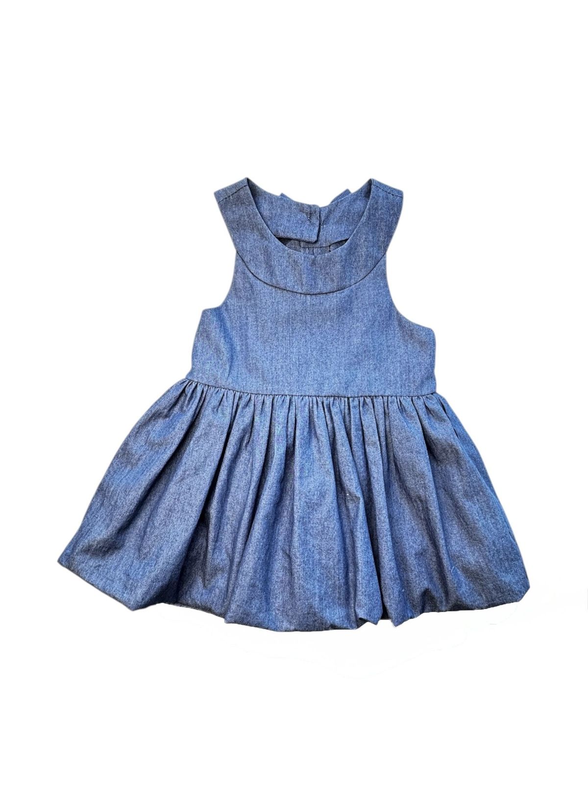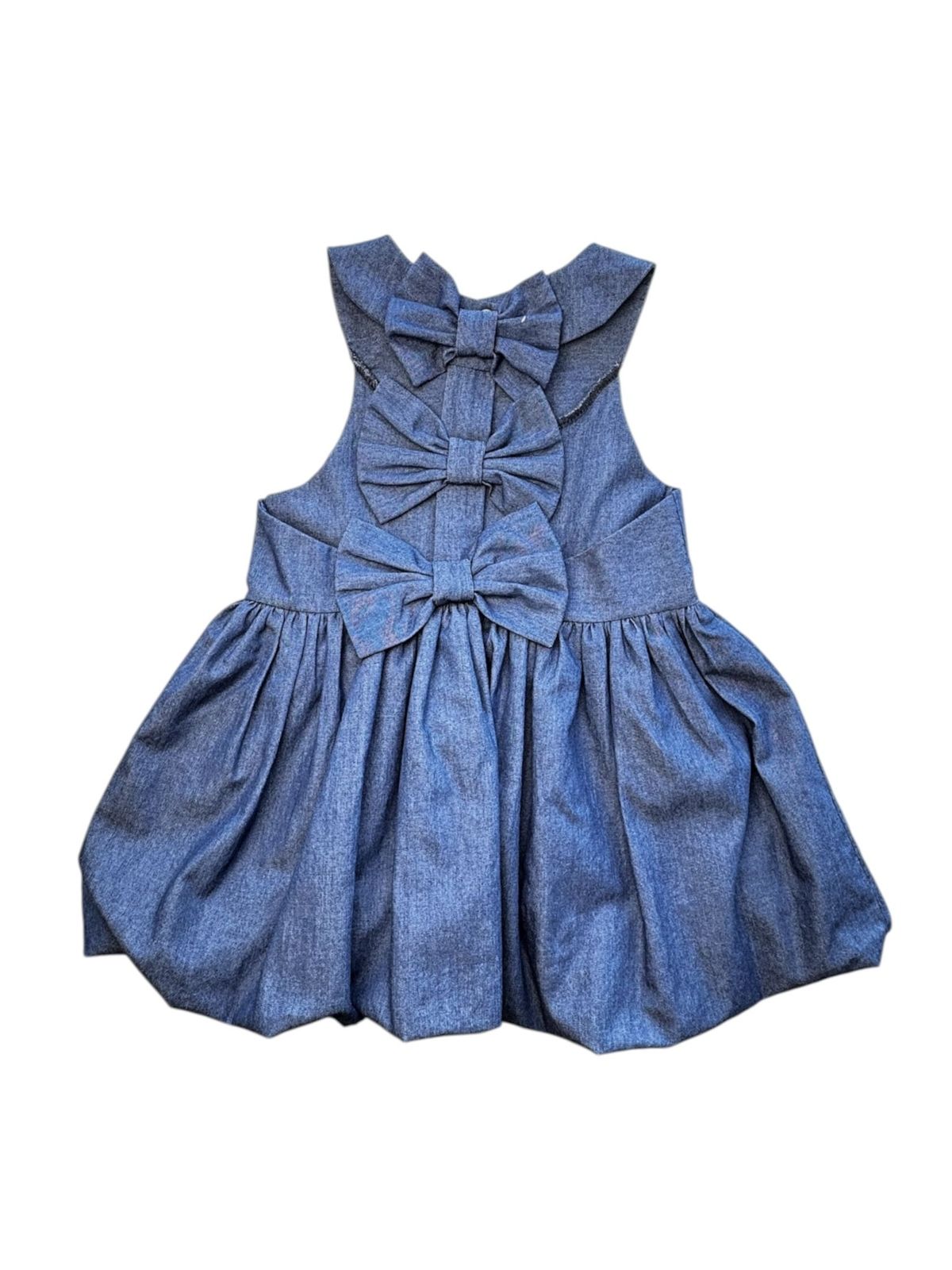 Φόρεμα τζιν ballon με φιόγκους στην πλάτη μπλε