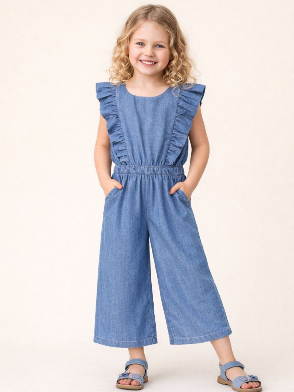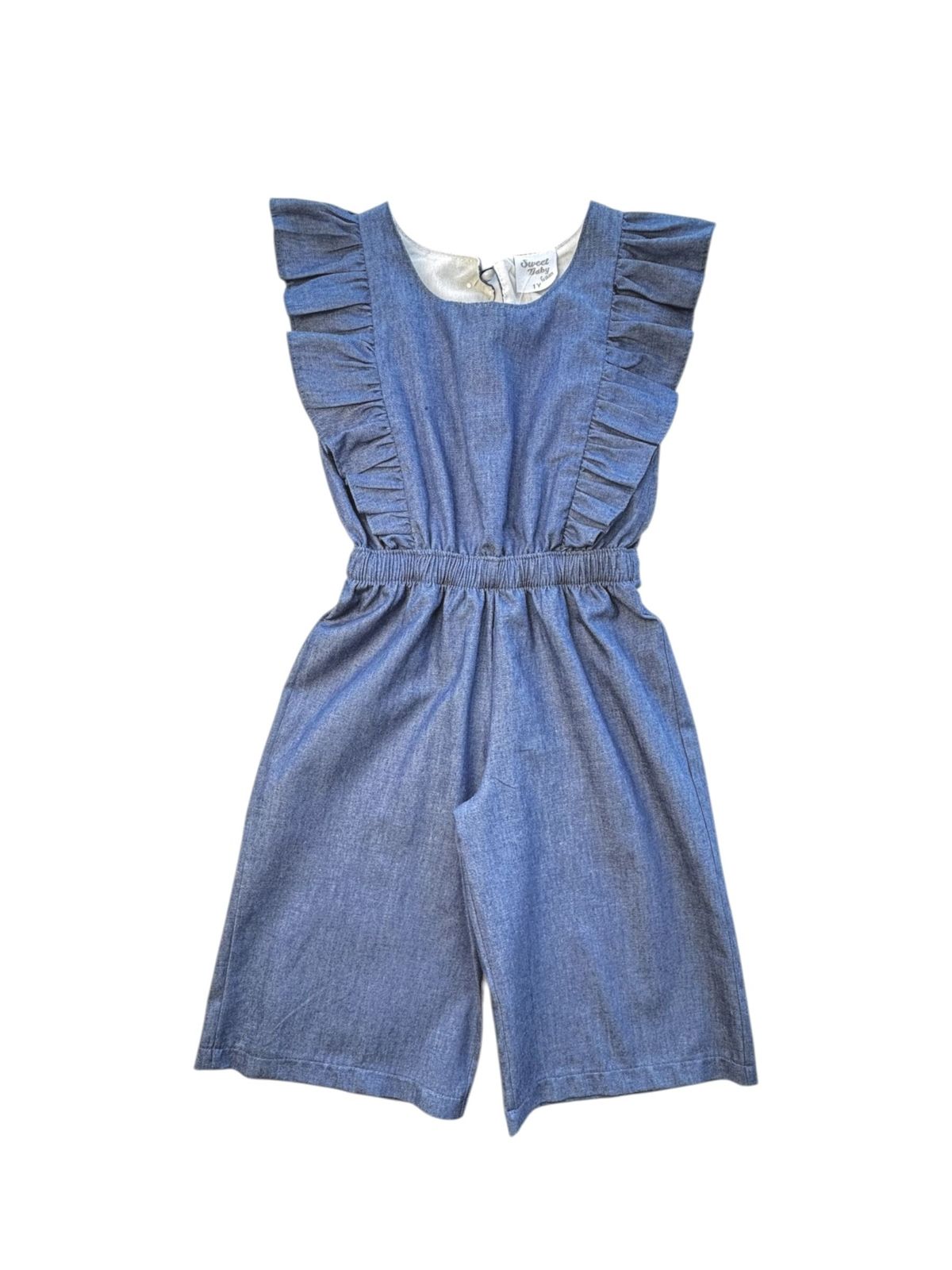 Φόρμα τζιν ζιπ κιλότ με βολάν μπλε