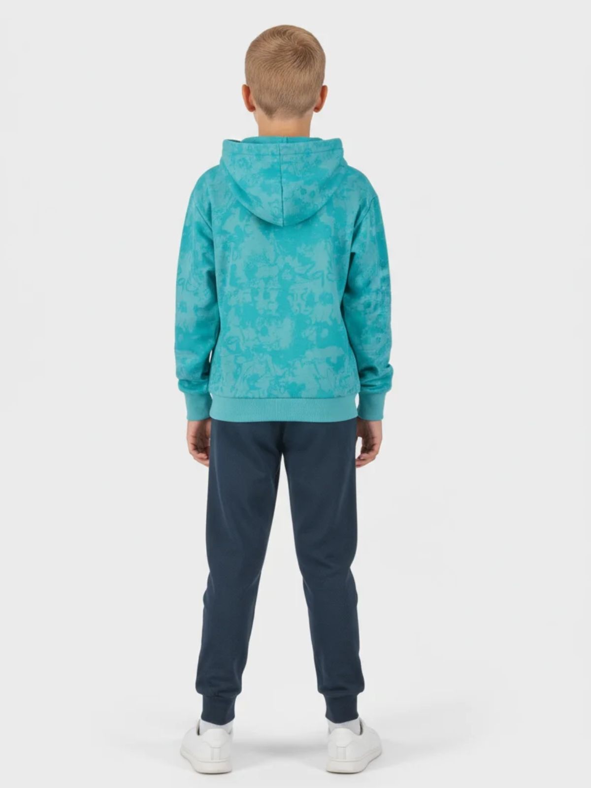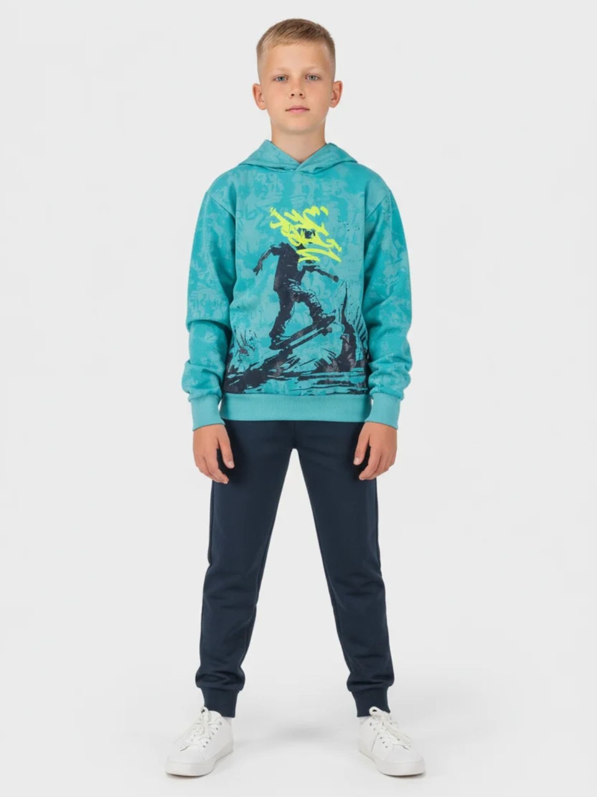 Σετ εποχιακό μπλούζα με κουκούλα και μονόχρωμο παντελόνι print skater βεραμάν