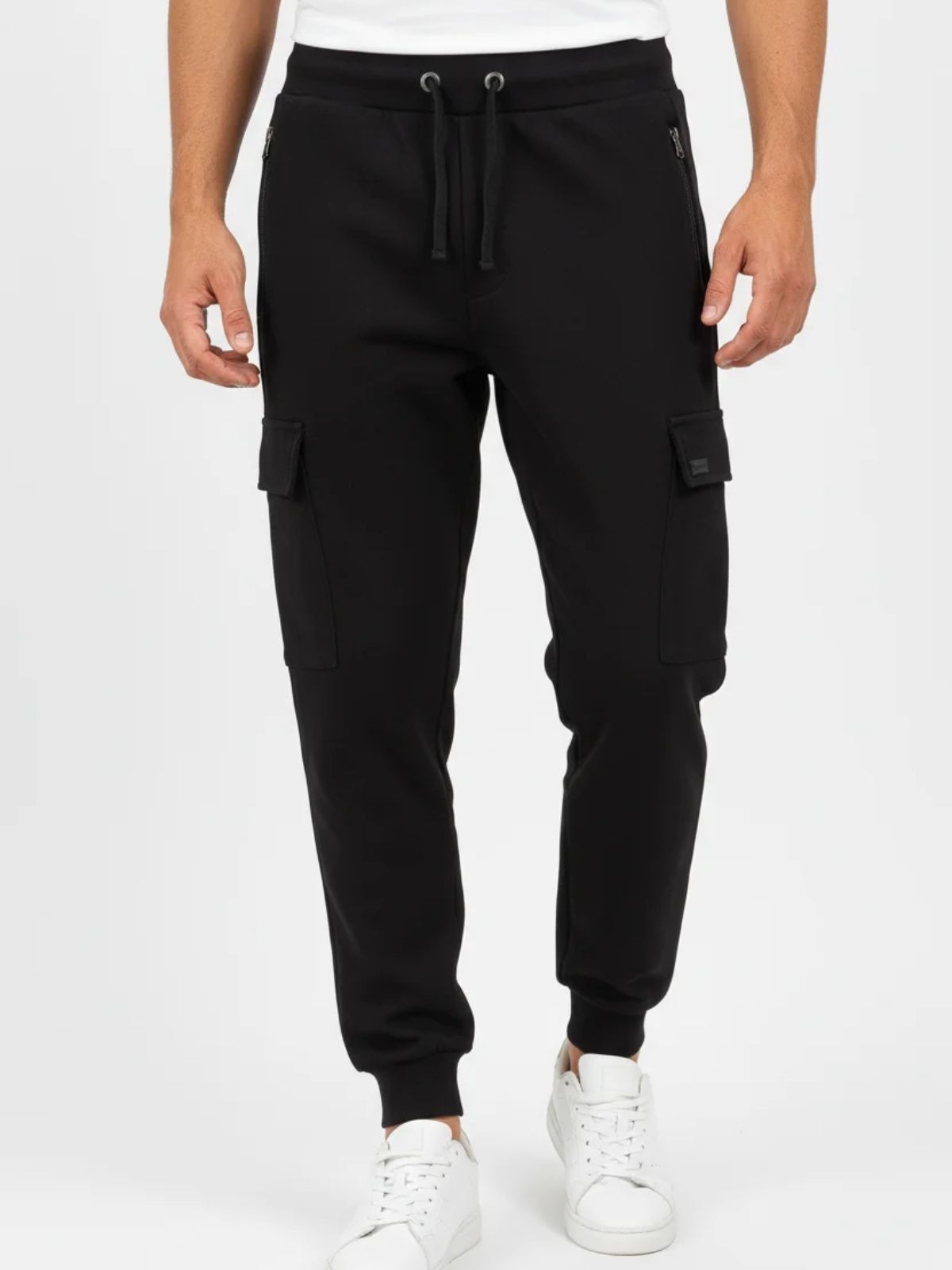 Παντελόνι μονόχρωμο cargo με φερμουάρ στις τσέπες μαύρο