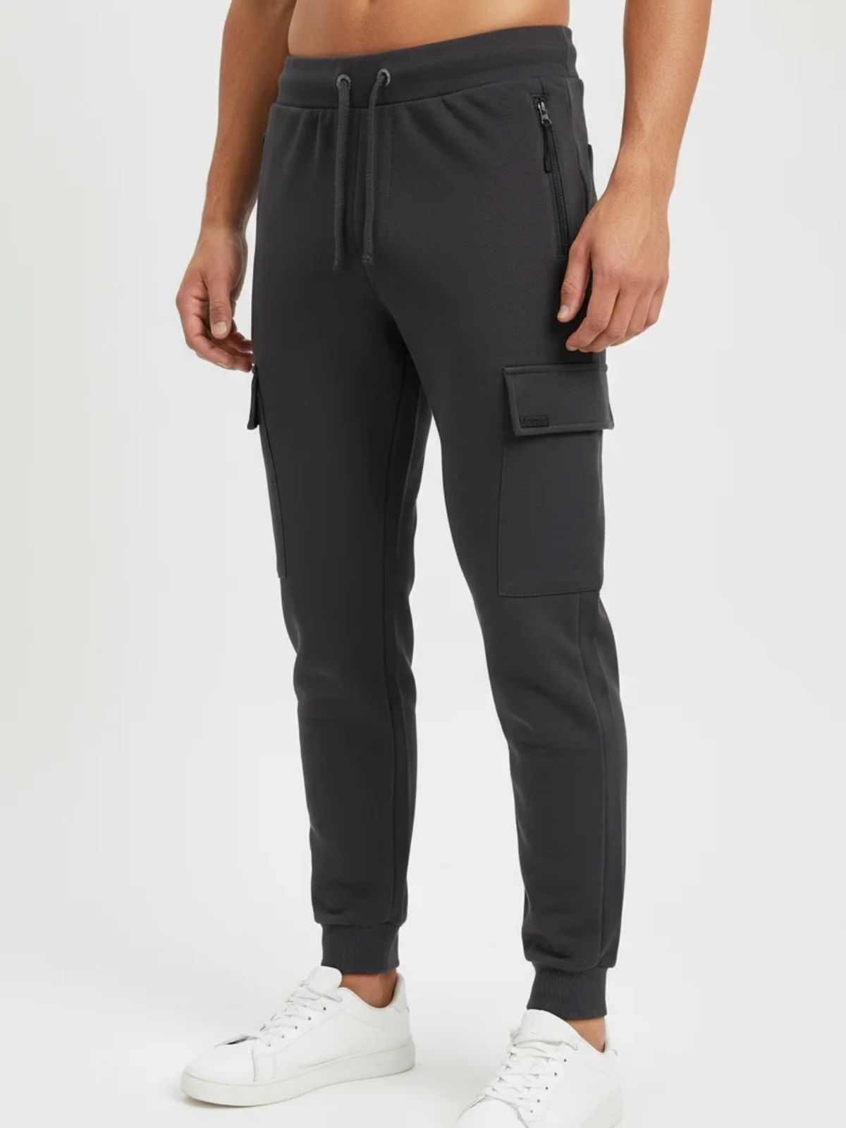 Παντελόνι μονόχρωμο cargo με φερμουάρ στις τσέπες ανθρακί
