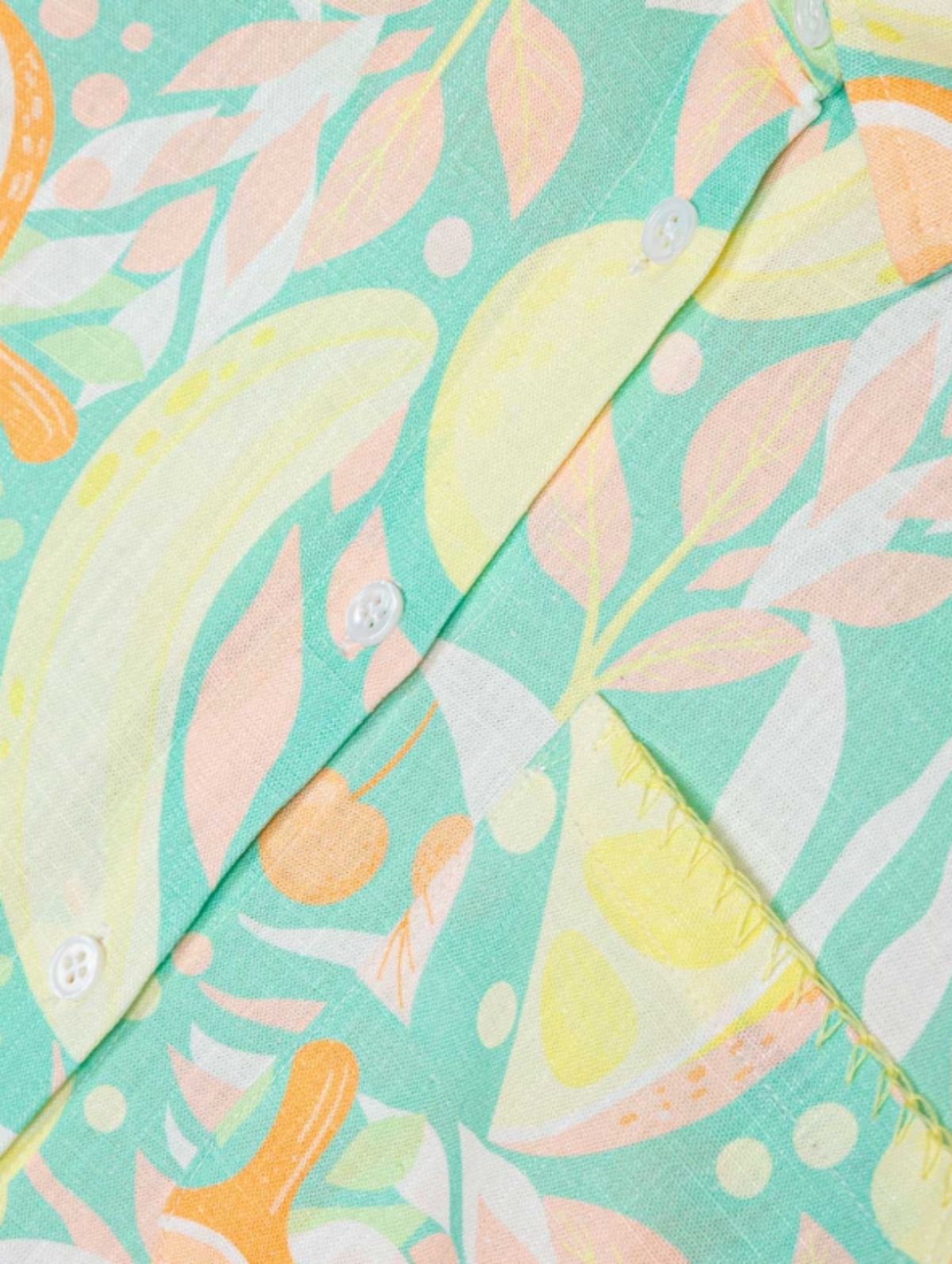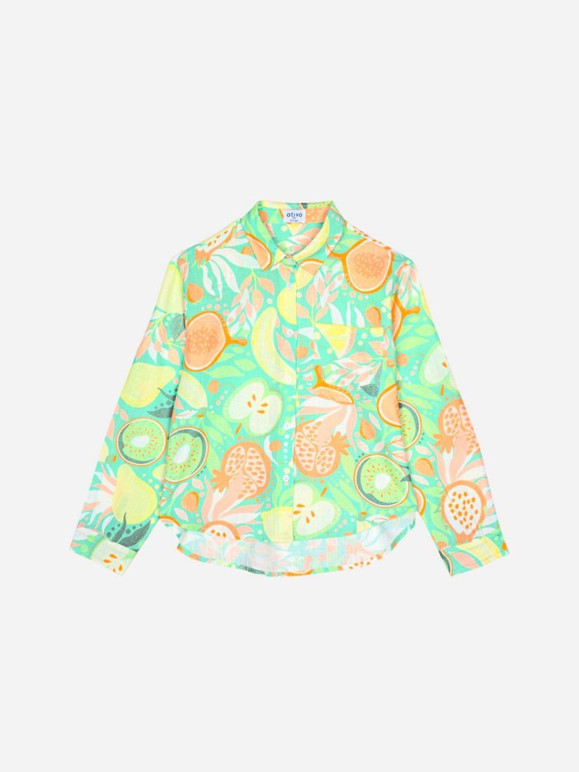 Πουκάμισο λινό με print summer fruits και κουμπάκια στα μανίκια peach