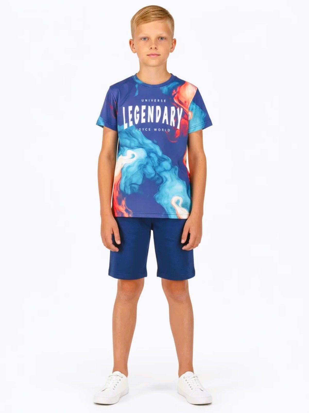 Σετ μπλούζα με print flames και μονόχρωμη βερμούδα μπλε