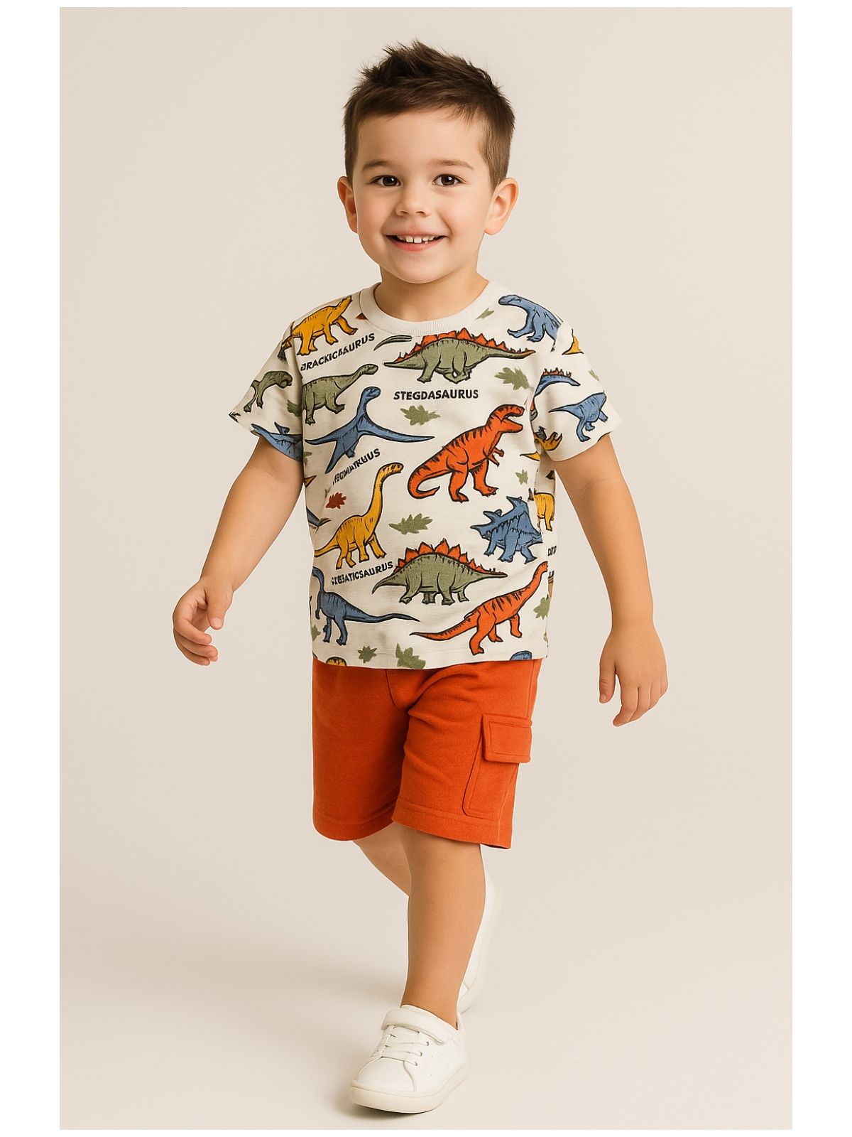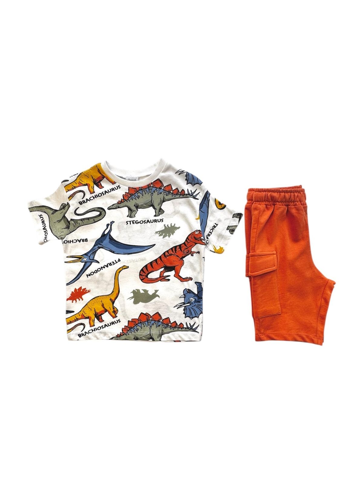 Σετ βαμβακερό μπλούζα με δεινόσαυρους και βερμούδα με τσέπη εκάι