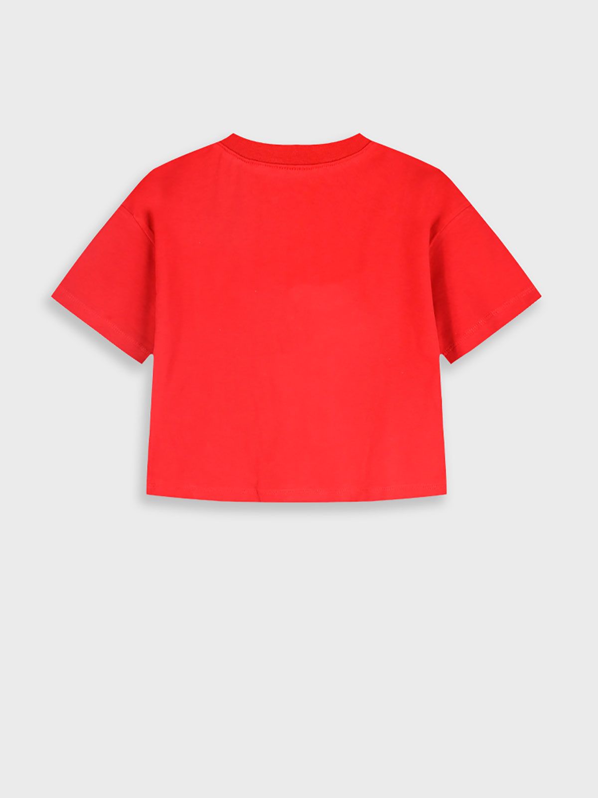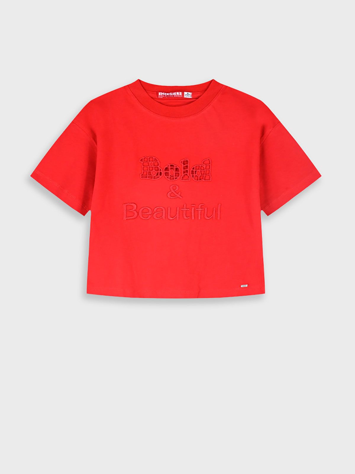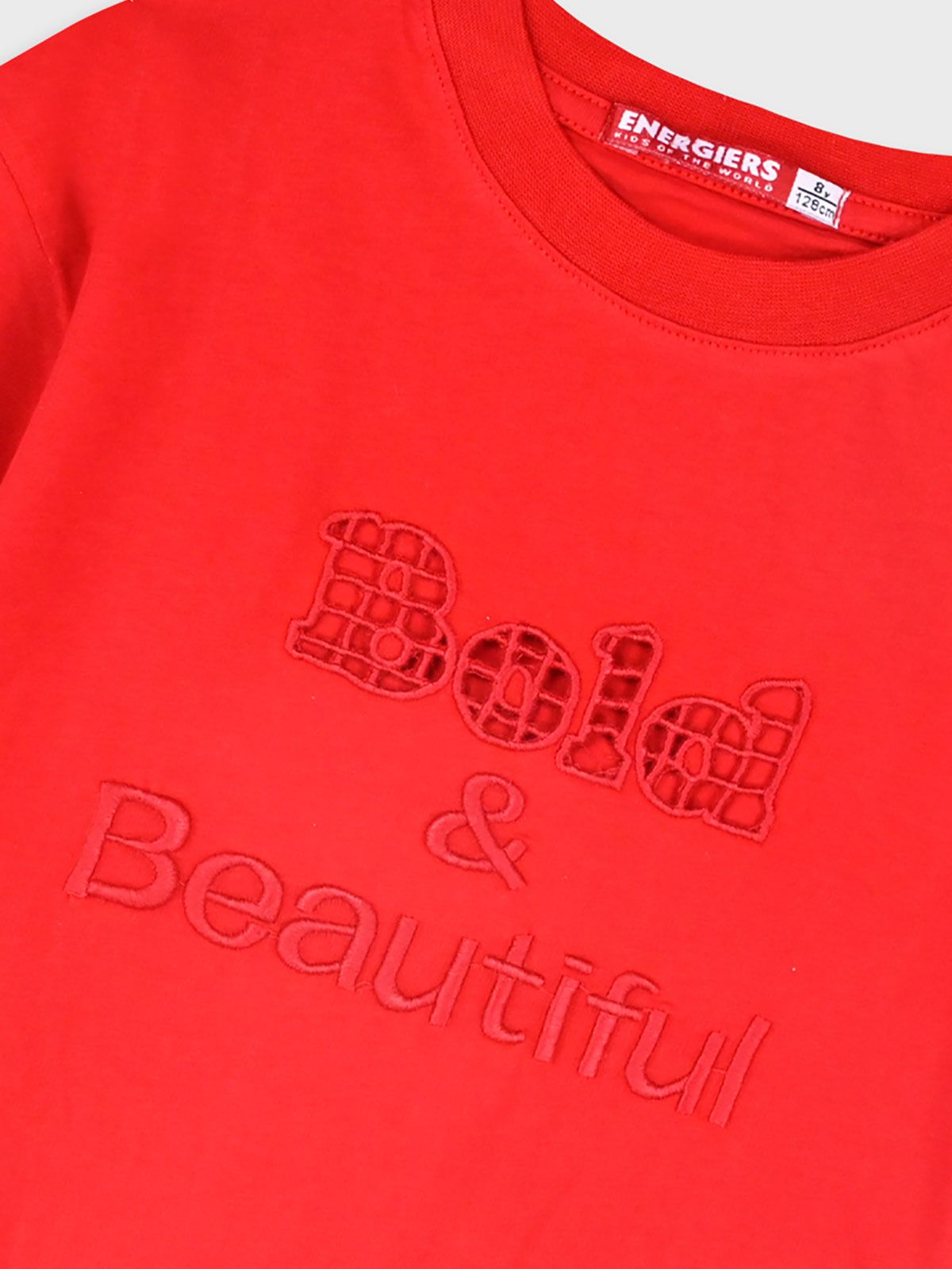 Μπλούζα μονόχρωμη με διάτρητα γράμματα κόκκινο