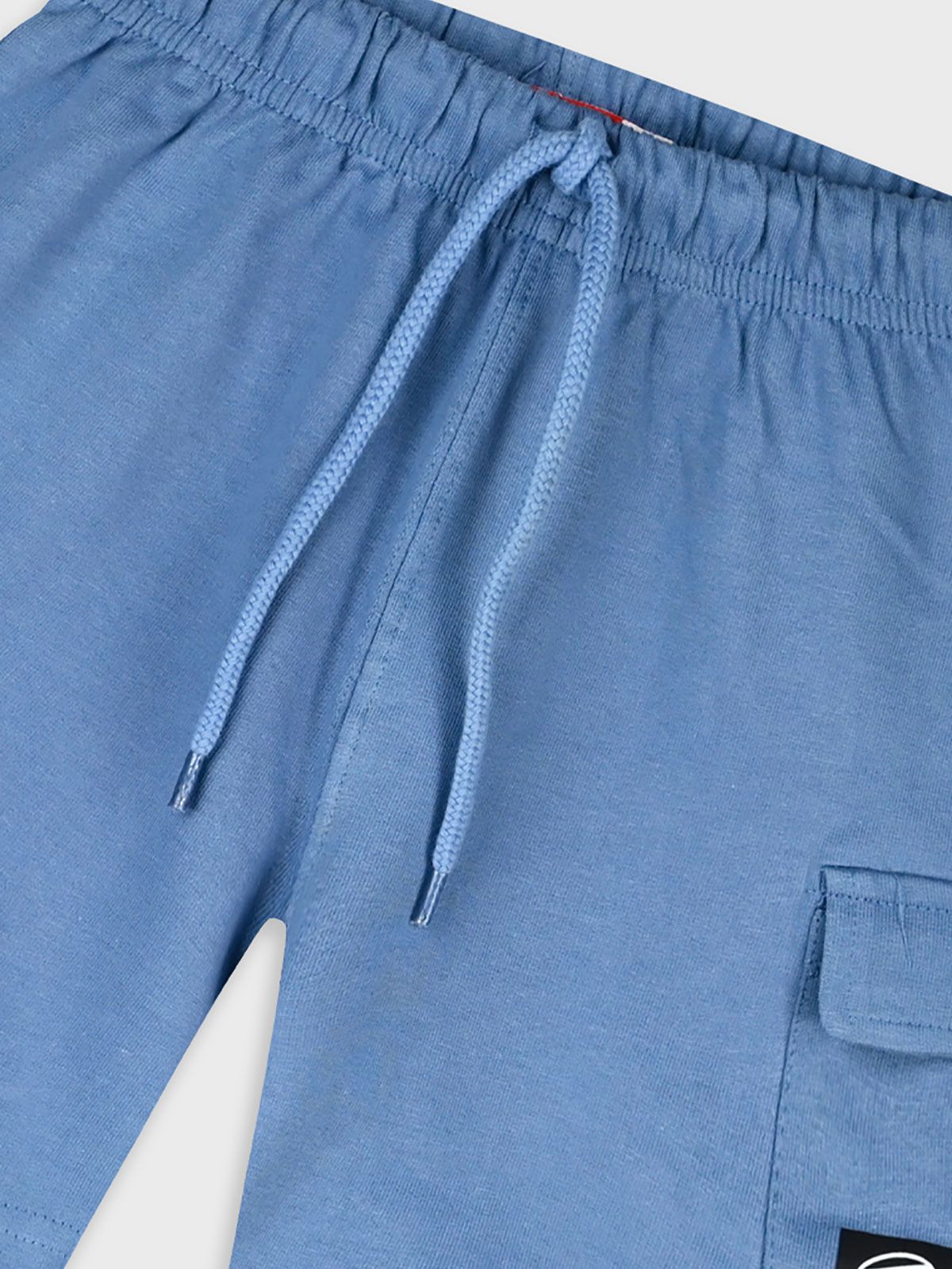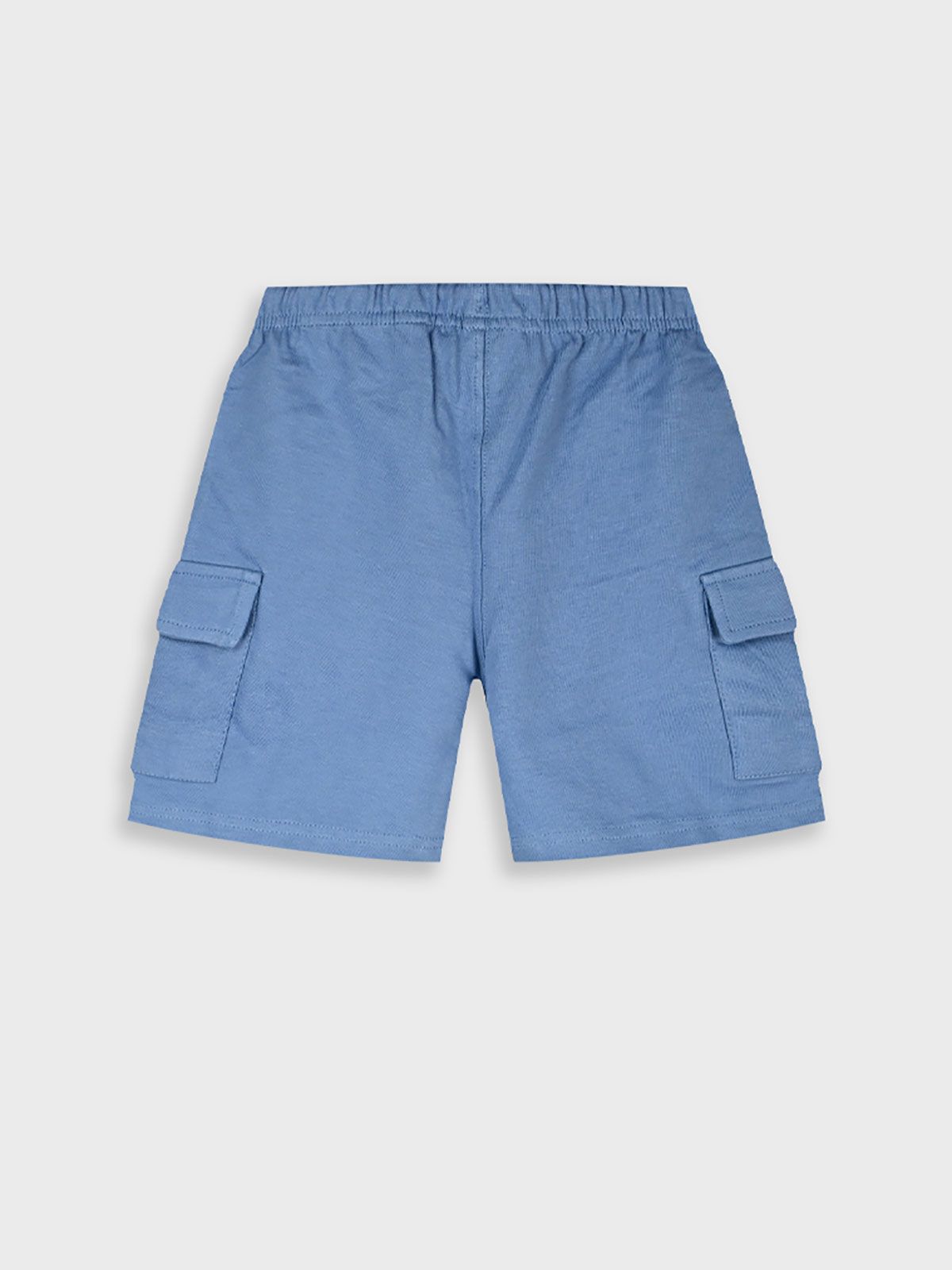 Βερμούδα μονόχρωμη Cargo βαμβακερή μπλε ραφ