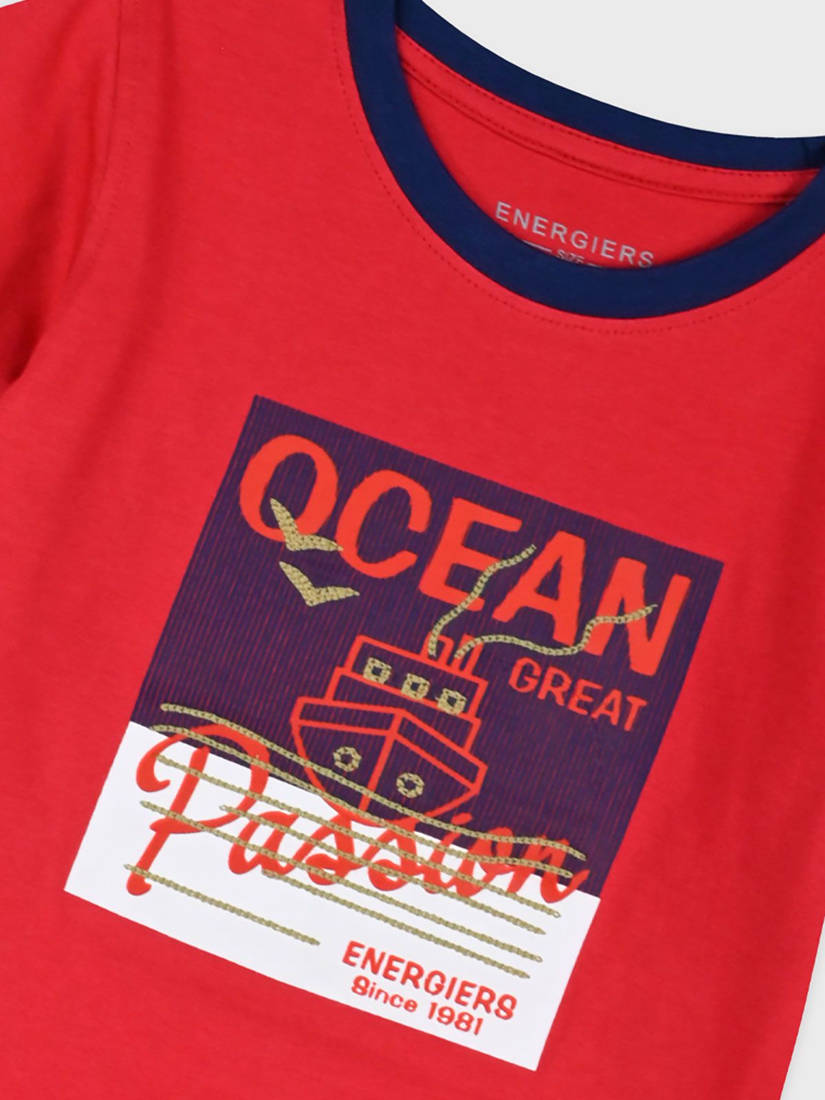 Μπλούζα κοντομάνικη με ριπ print και κέντημα κόκκινο