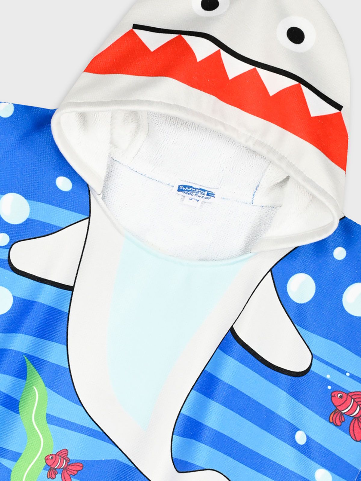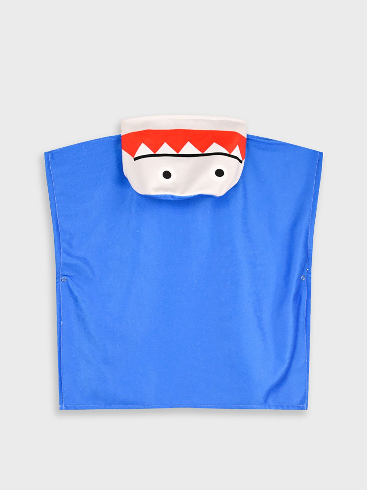 Πόντσο θαλάσσης με κουκούλα και print καρχαρίας μπλε