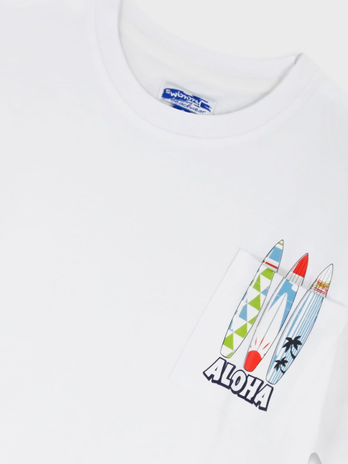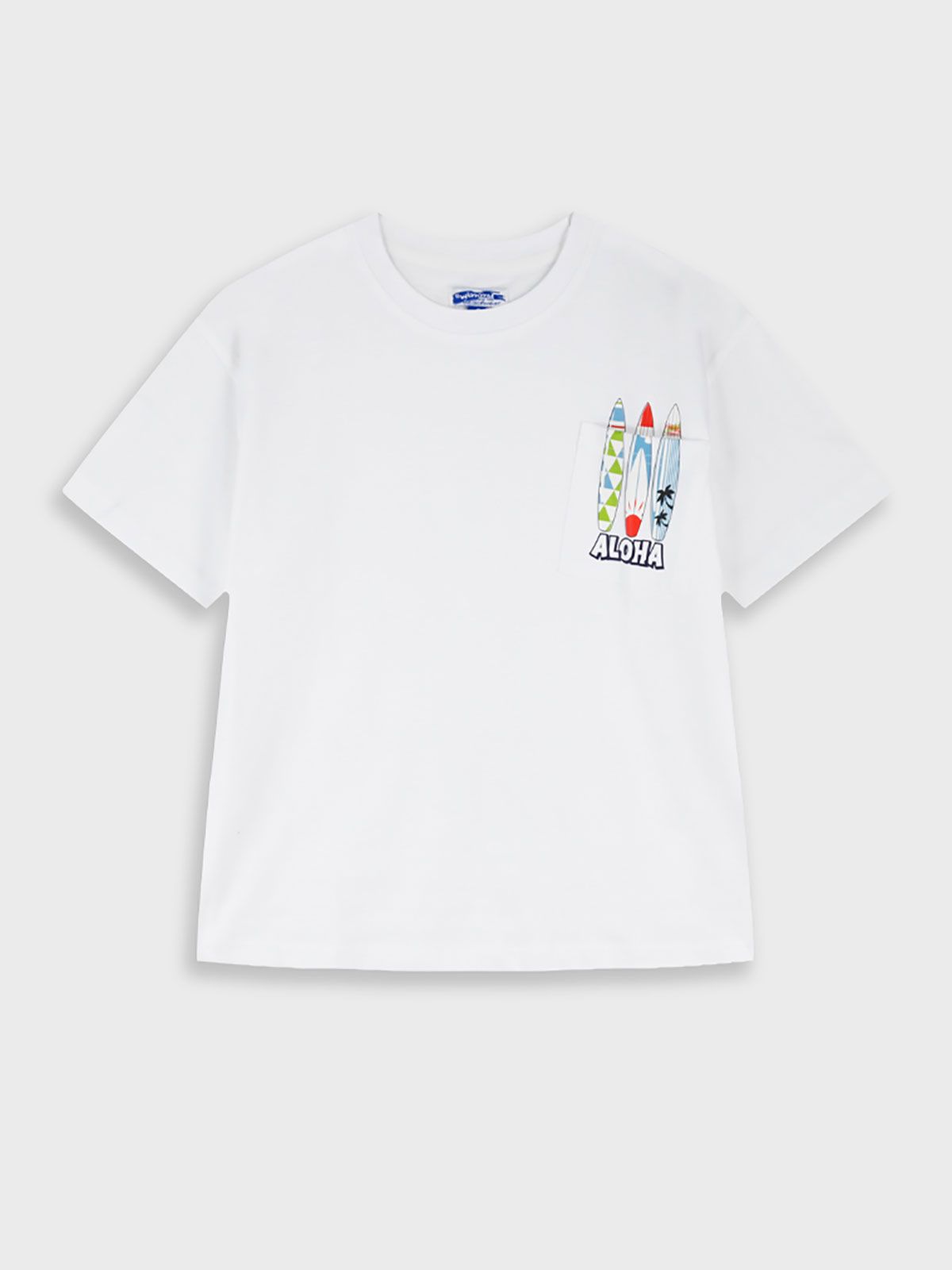 Μπλούζα κοντομάνικη με τσέπη και print σανίδες λευκό