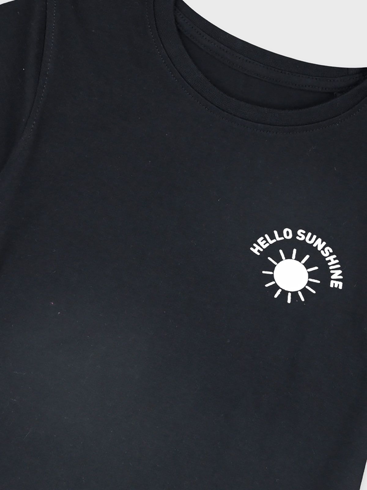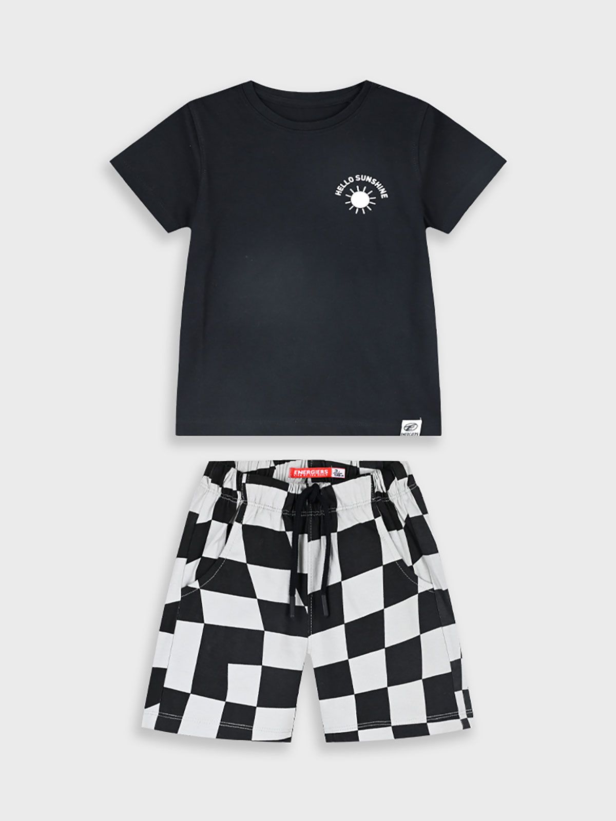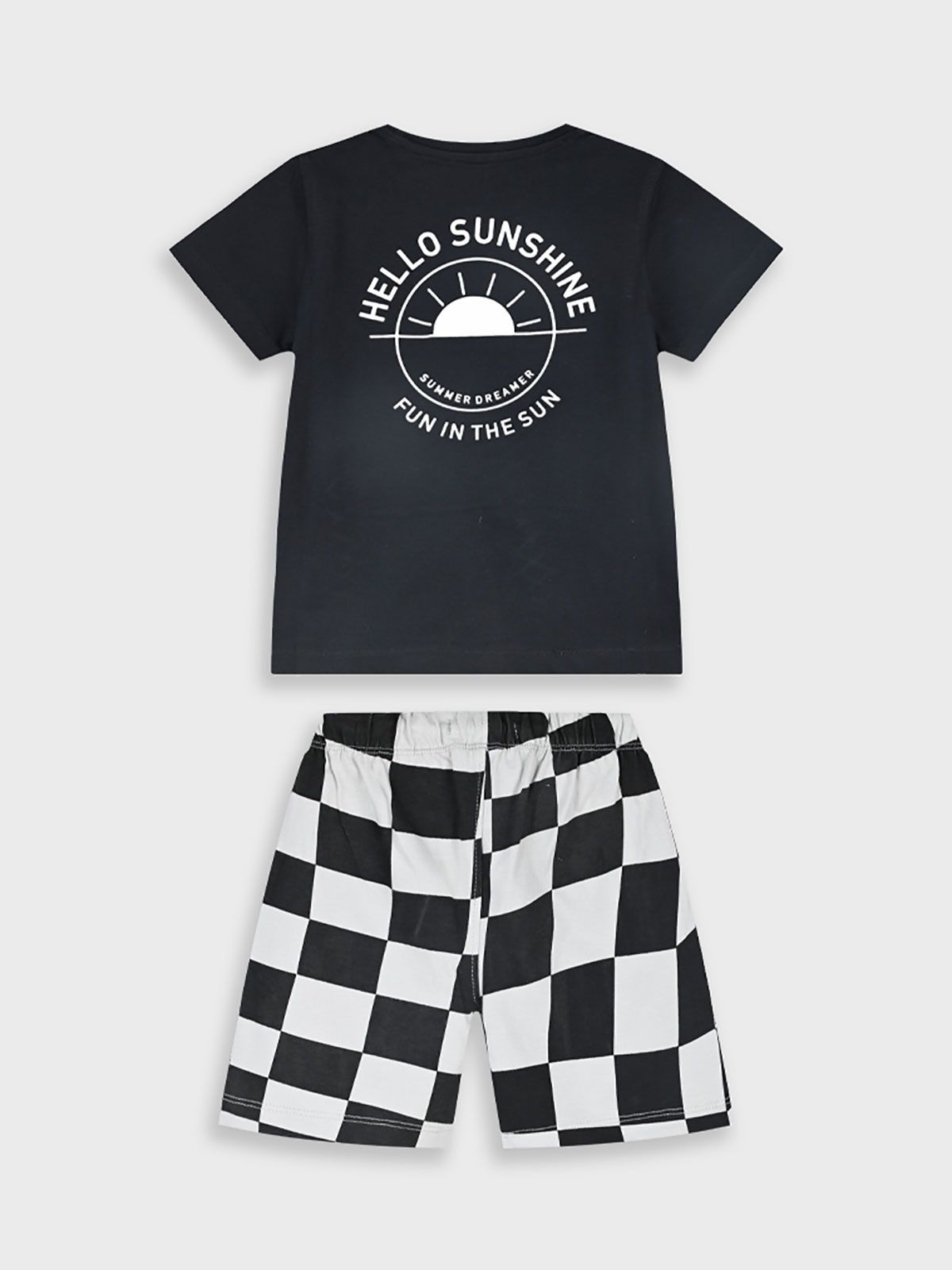 Σετ μπλούζα με print hello sunshine και καρώ βερμούδα μαύρο