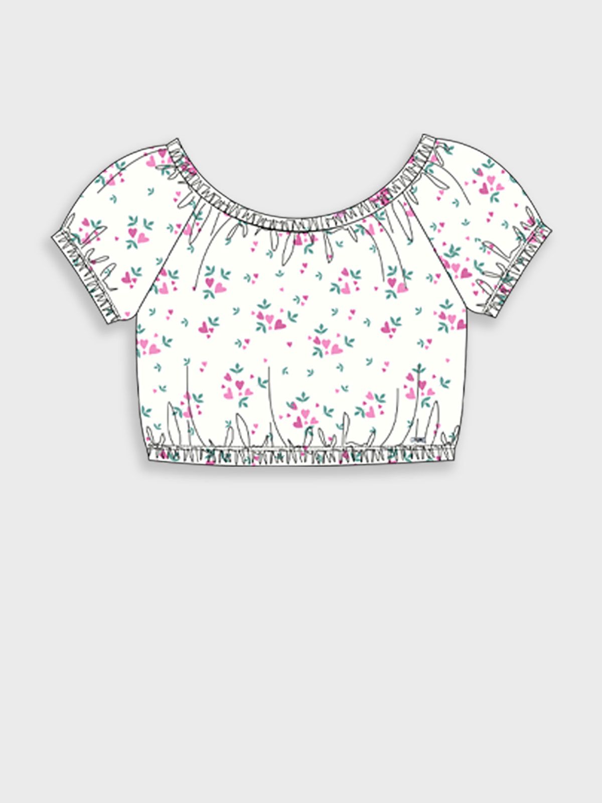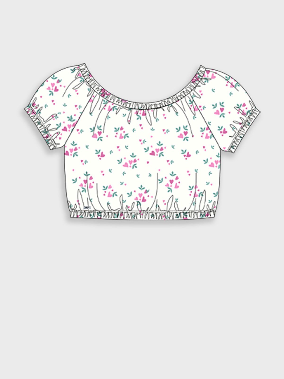 Φλοράλ κροπ τοπ με καρδούλες λευκό