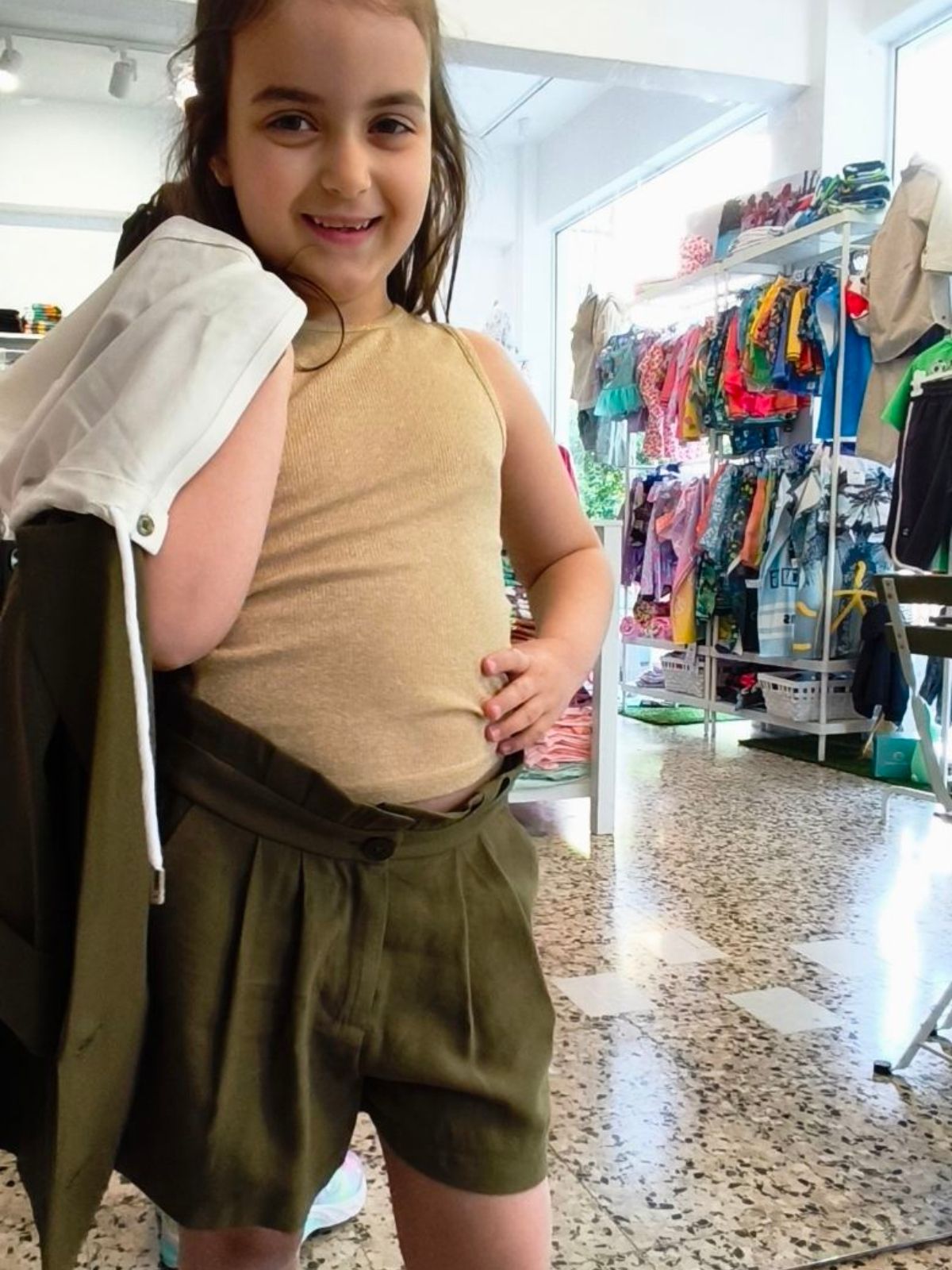Σορτς μονόχρωμο με πιέτες και τσέπες χακί